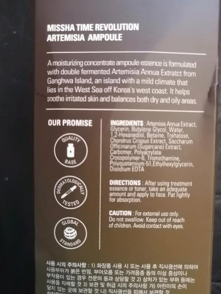artemisia annua extract 70%, glycerin, butylene glycol, purified water, 1,2-hexanediol, betaine, trehalose, irish moss extract, sugarcane extract, carbomer, polyacrylate crosspolymer- 6, tromethamine, polyquaternium-51, ethylhexyl glycerin, disodium edita