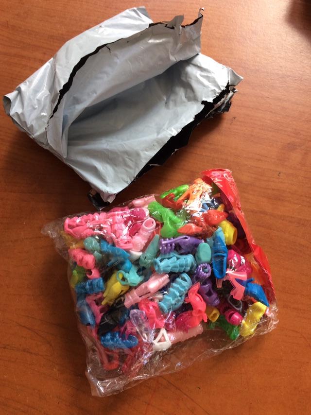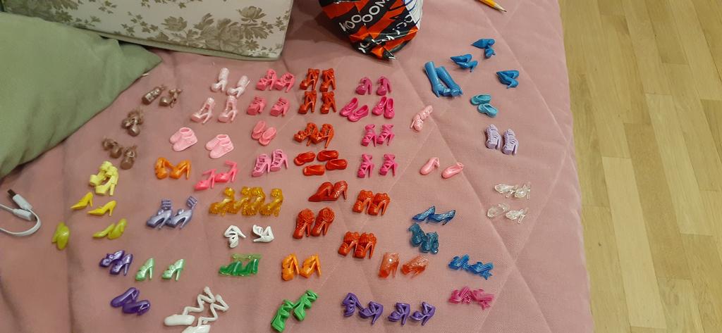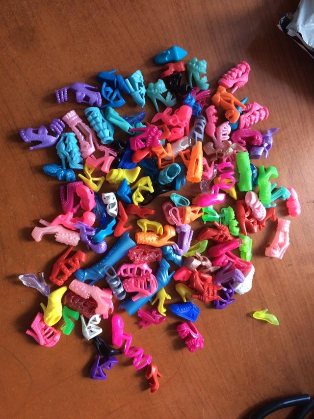 Всё пришло быстро, всего 2 недели. Очень крутой набор. Ни одни туфельки не повторяются, если фасон и одинаковый, то цвета разные. Все туфельки парами, одинарных нет. Просто фантафигенно, буду заказывать ещё. Продавца рекомендую! Сорри за засвеченную фотку, лучше не получилось снять.