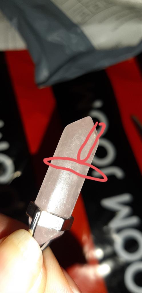 Ужасно расстроена: в одной посылке пришло 7 товаров, пластмассовая комп.мышка - цела, пластмассовый обруч для волос - цел, а все, что касается кристаллов - просто капец. Делаю вывод : если целы пластассовые изделия, значит продавец изначально в посылку положил побитый кулон. На фото видно, что кристалл имеет трещины причем, пронизывающие весь кулон и соскол. Такой же, со сквозной трещиной пришел и круглый кулон из розового кварца Носить треснутые кристаллы - просто НЕЛЬЗЯ. ВЕРНИТЕ ДЕНЬГИ.