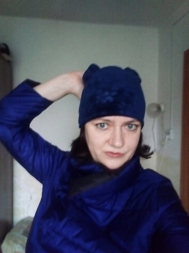 Осенняя шапка из бархатистого тянущегося материала с рельефным рисунком. Двухслойная, качество пошива хорошее, цвет как на картинке - темно-синий. А вот с размером беда☹️ Или голова большая (57,5 см), или шапка детская. Она широкая, к тому же хорошо тянется, но короткая, мне только на макушку. С таким пошивом в уши будет задувать. Хорошо, что купила только одну, сначала хотела ещё и черную взять.