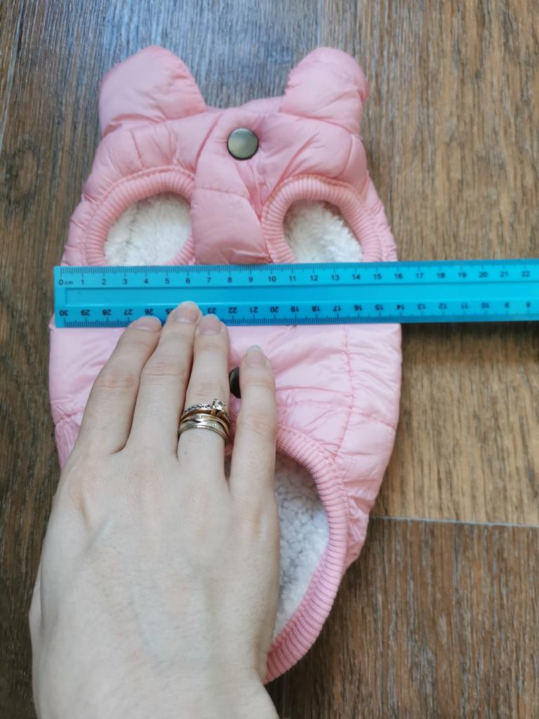 Отличная жилетка!👍На таксу спортивного телосложения (шея 38см, грудь 58см.) заказанный размер подошёл оптимально. Внутренняя сторона очень мягкая, надел без проблем и сразу собрался на улицу обновить по снежку😄 Единственный нюанс: кнопки на пузе; больше люблю, когда сверху застёгивается.)Пока всё устраивает. Посмотрим, как будет в носке, на сколько хватит. Брали за 569руб. Пришла быстро. Советую! Дополняю отзыв. На первой же неделе нОски сломалась одна кнопка. Вообще, кнопки очень слабые, во время прогулки иногда расстёгиваются (хотя жилетка нам не тесная, даже слегка свободна, как должна). Пожелание продавцу: сменить фурнитуру на более качественную. А так, лучше в другой раз опять на молнии (сверху) закажу у прежнего продавца.😉