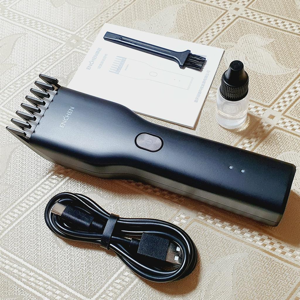 Аккумуляторная машинка для стрижки ENCHEN Xiaomi с керамическими лезвиями Отличная модель для домашней стрижки с доставкой из России. Вариантов расцветки корпуса всего два - классические черный и белый. Корпус машинки полностью из матового пластика, хорошего качества, приятно держать в руке. Впечатление что есть шероховатое напыление, благодаря которому машинка не скользит. На лицевой панели лого производителя, многофункциональная кнопка и индикатор работы и зарядки. Кнопка находится как раз под большим пальцем, можно переключать режимы и включать/выключать ее на ощупь. Одно нажатие на кнопку даёт стандартный режим в 4500 об/мин. Удерживая кнопку несколько секунд можно перейти в турбо-режим 5800 об/мин. С обратной стороны табличка с параметрами и ползунковая клавиша регулировки длины насадки для установки длины срезаемых волос. Насадка двигается довольно туго. Всего имеет 7 фиксированных положений от 3 до 21 мм. Если снять насадку, то минимальная длина срезаемых волос будет 0,7 мм. Под насадкой находятся два ножа - подвижный и статичный. Подвижный нож - керамический. Он меньше подвержен износу, поэтому должен служить дольше. В комплекте идут аксессуары: кабель зарядки Type C, щеточка для чистки и пузырек масла для смазки ножей. Стрижет машинка вполне достойно, даже в стандартном режиме, волосы не закусывает, ножи не забиваются. Муж не дождался, пока я приду с работы и опробовал ее сам. Я была удивлена, но он справился! Время полной зарядки машинки 2 часа, время стрижки 80-90 минут. И огромное преимущество - возможность работы при зарядке. Мое резюме: аппарат достойный, и я могу рекомендовать его для покупки. Цена на момент покупки 1118₽. Доставка за 5 дней курьером с московского склада. Telegram-канал: tb_1970_kanal