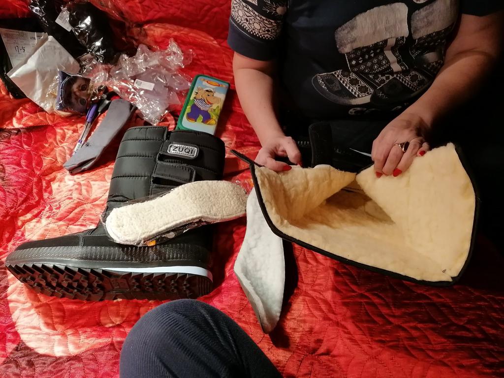 Посылка шла 39дней,к новому году не успела, получили 4января. Отправление пришло в мягкой упаковке, без коробки. У ребенка размер 45-46 российский, заказали 47, размер впритык. Сапоги теплые, есть запасные стельки. Мех сапог и стельки отличается. Вложенная стелька слишком мягкая, будет сминаться при носке. придется ее прикрепить на какую то жесткую основу,может на другую стельку пришить. А вложенные запасные стельки 46размера,т.е. на 1 размер меньше сапог, но может у них нет таких больших размеров? Мех толстый, подошва тракторная, ребенок опробовал и доволен.