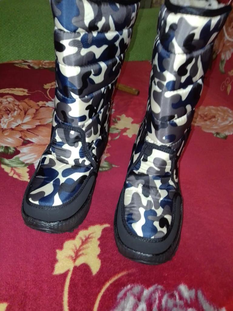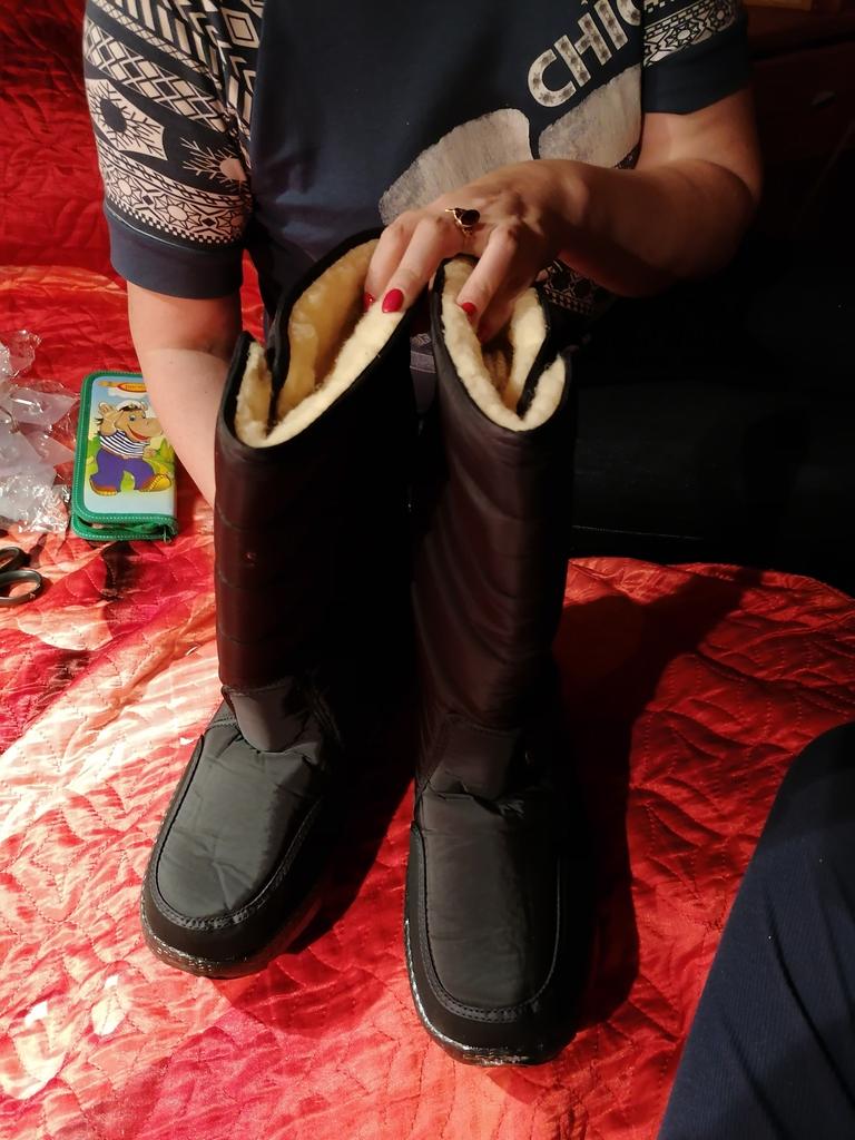 Брала подруге, у нее 36 размер и нога узкая, я взяла 37 размер. Боялась, что будет мало. Сегодня получила, подруга пришла, померяла и сказала, что прям как раз!!! Я очень довольна! На подруге эти сапожки смотрятся очень стильно и красиво! Спасибо огромное продавцу!!! Шло очень долго на Чукотку - 2 месяца. Пришло в сборной посылке, трек отслеживался. Пришло просто в полиэтиленовом пакете, хотя другие дутики, такие же, как эти, которые я заказывала для себя, были в воздушном надувном пакете! Но ничего не повредилось, это хорошо. В общем, я довольна! Спасибо продавцу от подруги!!! Рекомендую эти дутики, очень хорошие и по размеру. Хотя, все-равно берите на 2 размера больше, так как, если нога широкая, то будут малы. Эти "космоботы", именно в этом магазине, выполнены на узкую ногу. Я до этого, несколько лет назад, брала такие же дутики, только у другого продавца, - так вот те, с самой большой полнотой были, а эти - узкие. Спасибо.