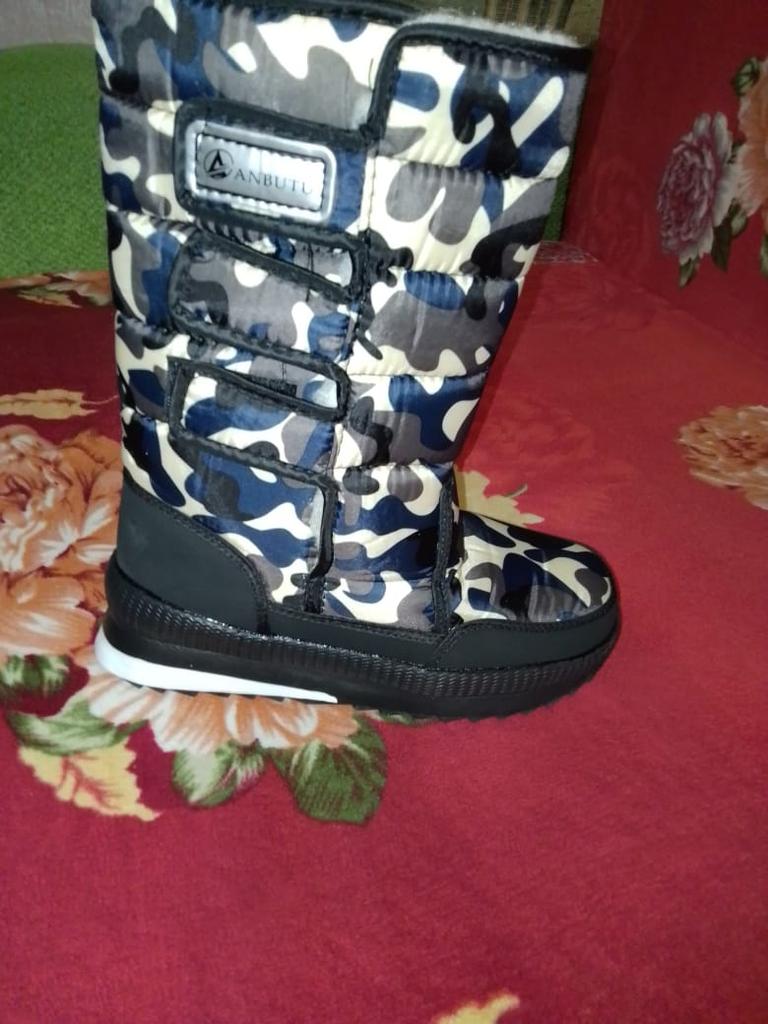 Получили сапожки для сына (12 лет). В прошлом году ходил в точно таких же и того же производителя, но куплены они были в обычном магазине. Отходил сезон "на ура", при том, что он обычно пока со школы дойдёт, пролезет все кучеря. Да и гуляют они с мальчишками очень активно, по сугробам. Прежние сапоги отходили на отлично, пришлось заказать новые просто потому, что стали малы. Эти же пришли тоже очень хорошего качества, тёплые. Оказались повыше прежних, на три липучки (на старых было две). Надеюсь, будут служить так же хорошо. Товар пришел достаточно быстро, за 20 дней, без задержек. Почтальон принёс на дом. Спасибо магазину. Дополняю отзыв. Сын отходил зиму в этих сапожках. Нигде ничего не порвалось, всё целое, форму не потеряли. В общем оценка "5+"