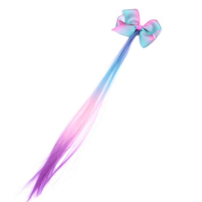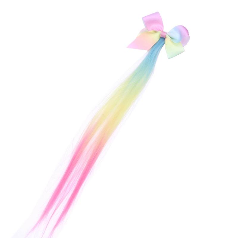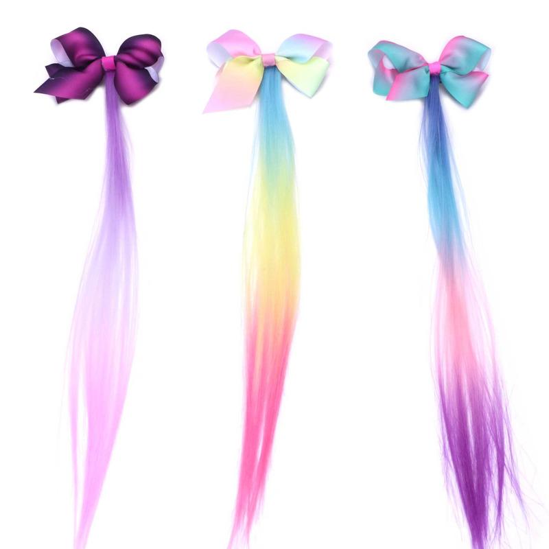 Красочные заколки для волос с бантиком для девочек, радужные блестящие крылья, банты для волос, детский длинный парик, заколки для волос принцессы