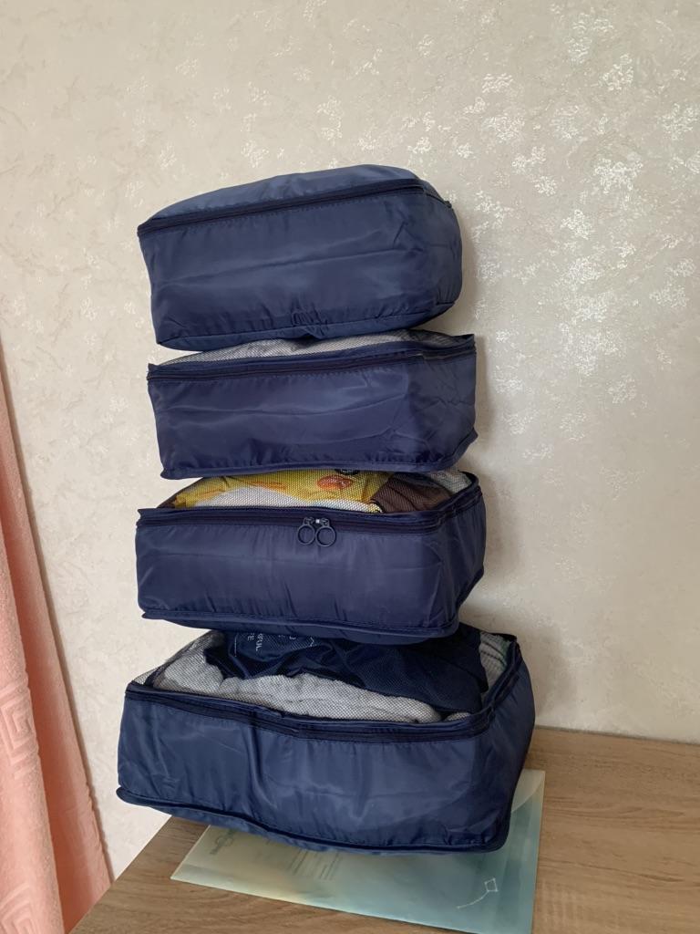 Давно хотела приобрести этот набор чехлов. Пока только прополоскала. Укладывать в чемодан ещё не пробовала. Чисто внешне нравятся. Спасибо продавцу..