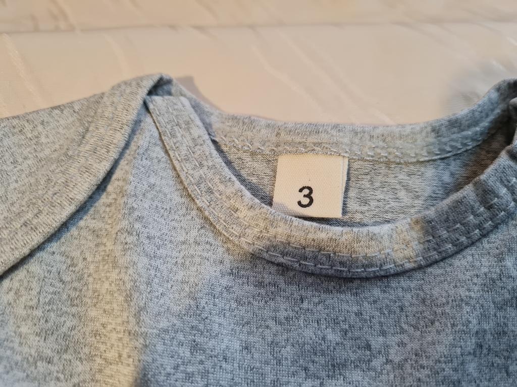 Как вы думаете, что с этим боди не так? Правильно, надпись. Она приклеена верх тормашками. Это первый очень большой минус. Второй - это не хлопок. Да ткань приятная на ощупь, но не то ,что заявлено продавцом. Бирка только с цифрой 3 , очень плотная. Больше никакой информации нет. И хотя пошив изделия выполнен качественно, настроение от такой покупки испорчено. На подарок не подойдёт. Вернули деньги.