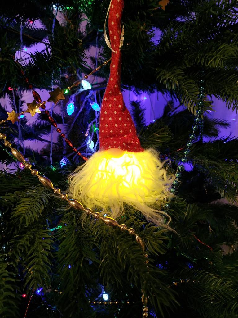 Какой же он милый, только придется приклеивать батарейку с лампочкой, она не держится внутри гномика