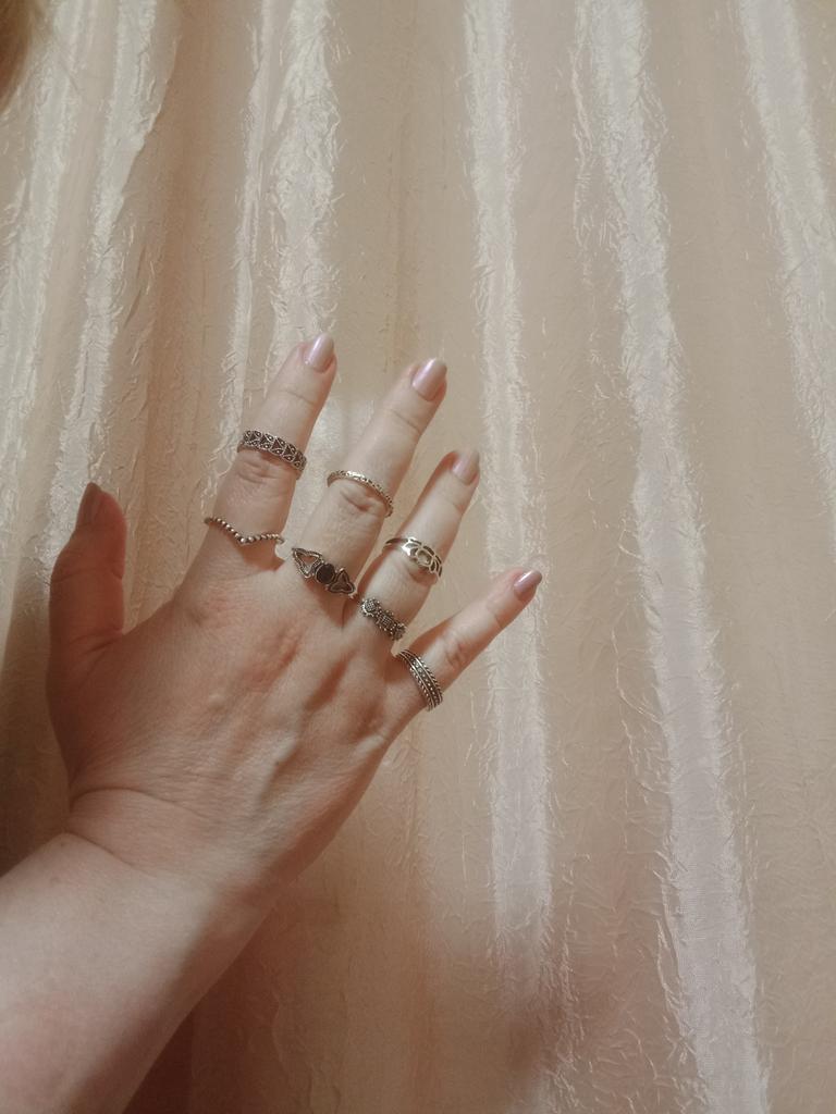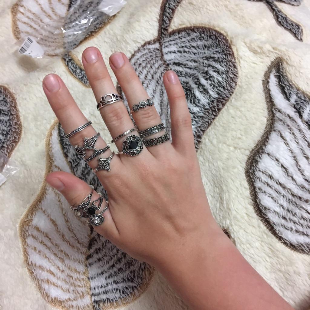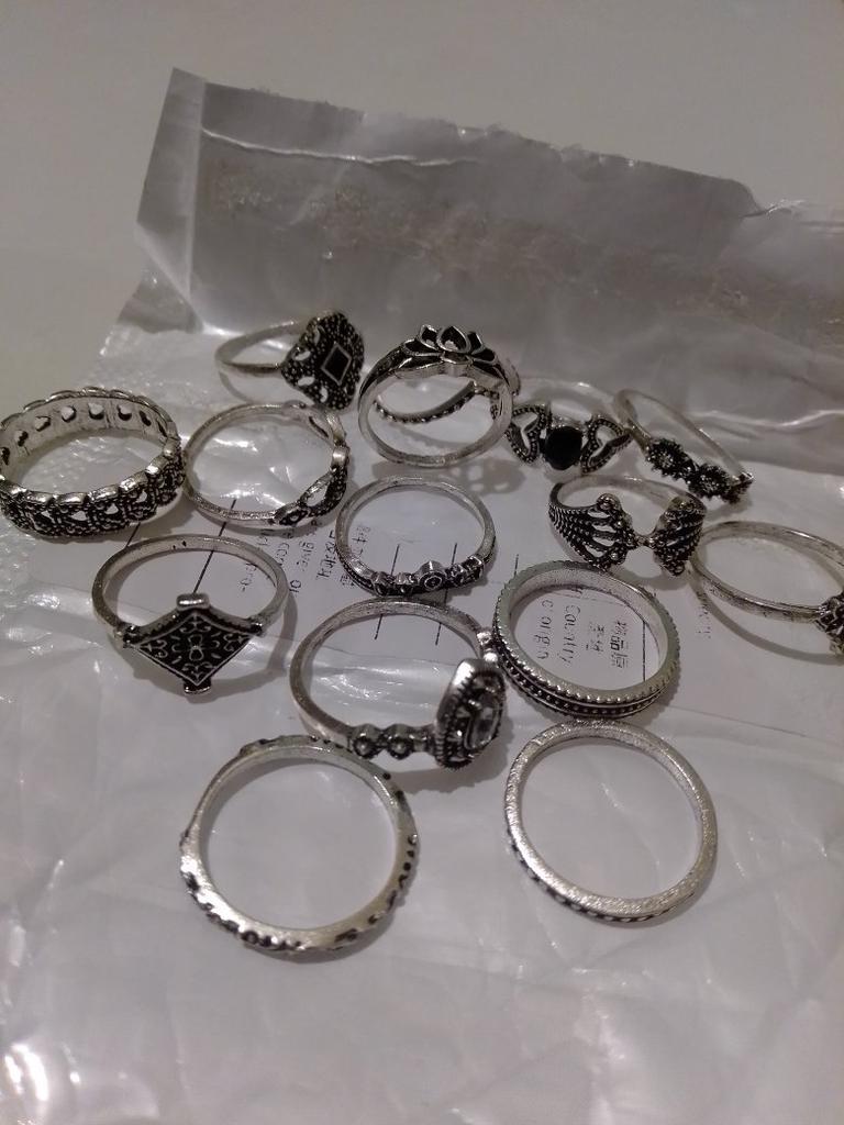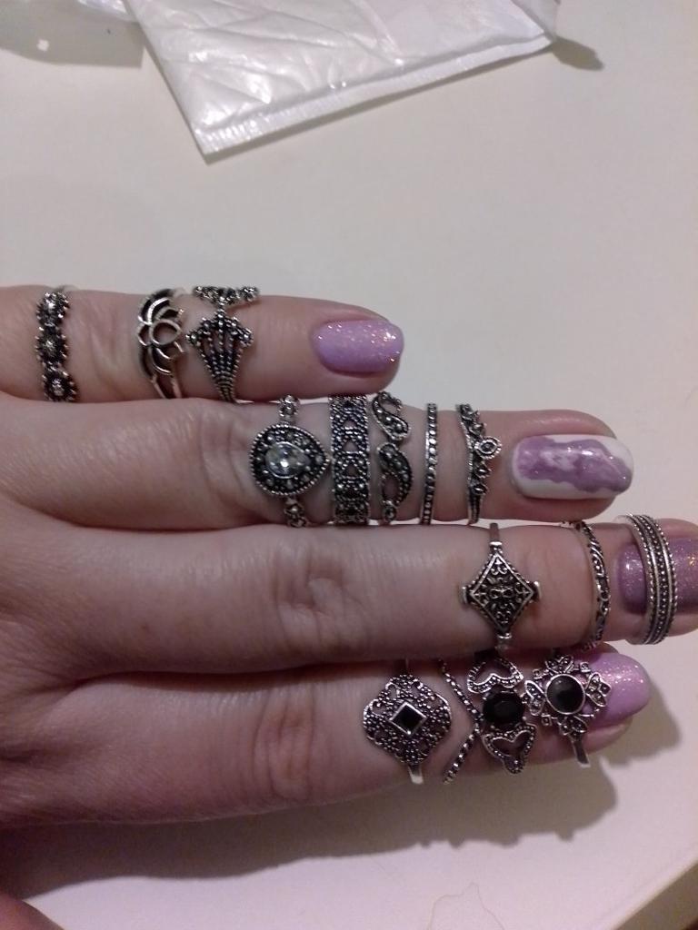 Набор колец. Брала для подруги-у нее пальчики тоньше,чем мои. В наличии все 15 шт.целые,разного размера Качество тоже порадовало К покупке рекомендую