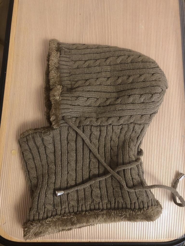 Очень классная шапка. Брала для работы. Теперь мне очень тепло и уютно, в шею не дует. Если надо, можно откинуть назад, вместо капюшона,потом одеть обратно. Все отлично. Я очень довольна.