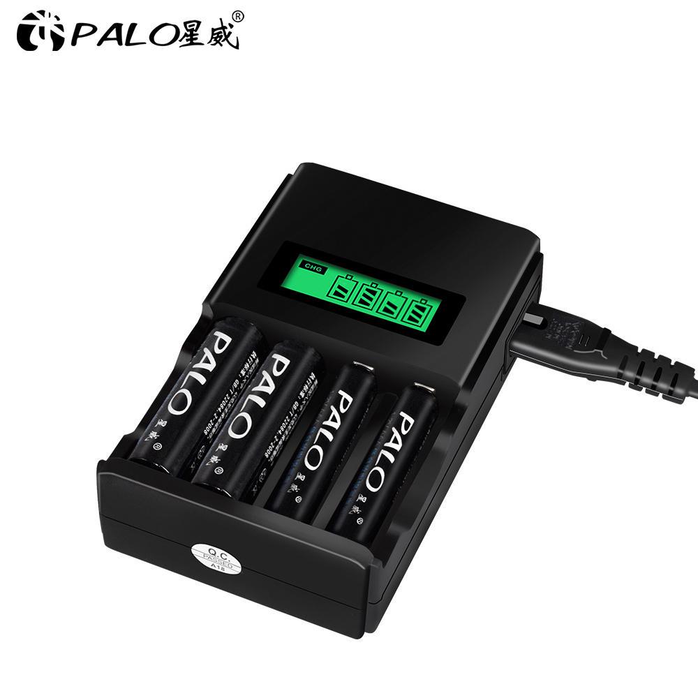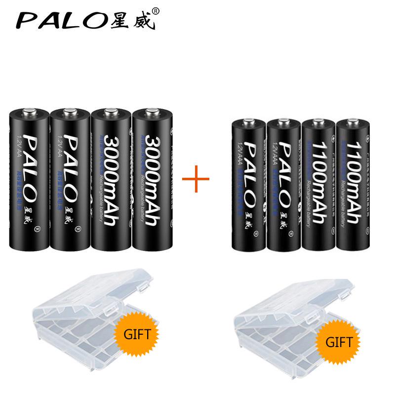 PALO 4 шт. AA 3000 мАч + 4 шт. AAA 1100 мАч 1,2 В Ni-MH аккумуляторная батарея + 4 слота смарт-зарядное устройство с ЖК-дисплеем для батарей AA AAA
