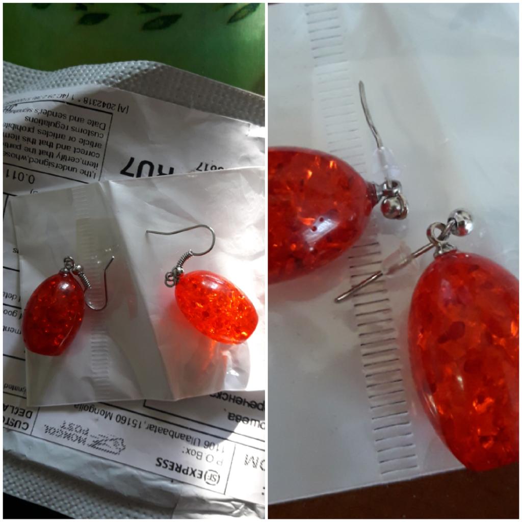 Получила сережки 26.03.20.г.В почтовый ящик положили. Симпатичные,переливаются как настоящие.,не тяжелые.Думаю смола,но сделана искуственно.Нужны зажимчики,а то можно потерять.А так очень даже за копейки СОВЕТУЮ.