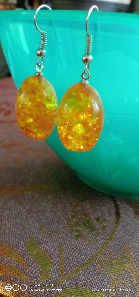 Bisschen größer als gedacht aber trotzdem schön,bin zufrieden,na ja ,es ist kein Bernstein oder eine davon,einfach Plastik darum schön leicht..DANKE...серьги чуток больше чем я себе представляла но не беда,всё равно интересные,правда не янтарь или из воска а просто пластик,поэтому лёгкие но лучатся красиво, как солнышко...спасибо