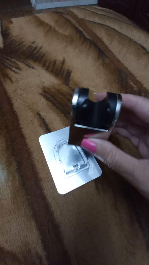 Самоклеющийся хромированый держатель для душа. Выбрала эту модель из за многих хороших показателей: не громоздкий, лаконичный и стильный дизайн ; внутри есть жёсткий поворотный механизм регулировки по углу наклона для лейки - в рабочем состоянии; есть автоматический стопор, благодаря ему душевая лейка надёжно зафиксирована. Перед приклеиванием держателя необходимо подготовить поверхность-клеить на чистую и сухую,т.к.присоска "намертво"прилипает к кафелю. Минус-не очень качественное хромирование. Рекомендую к 🛍️.
