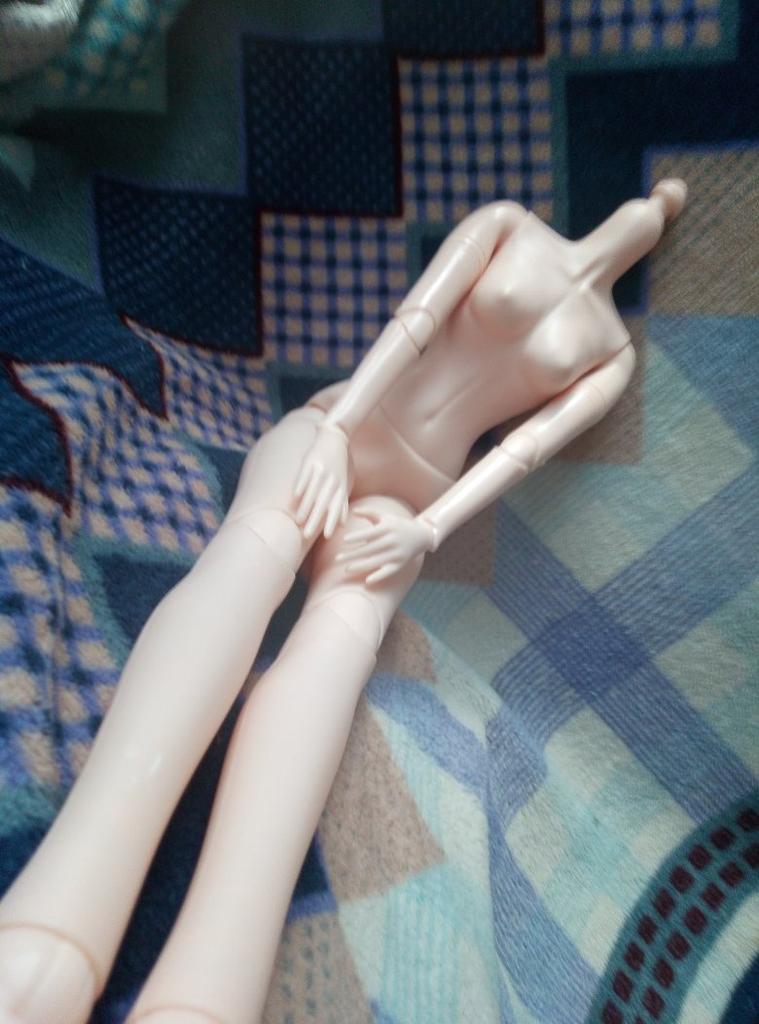 От заказа до получения - ровно месяц. Заказала куколку 29 января, 19 февраля она прибыла в Москву, а 28 поступила в моё почтовое отделение. Получила по треку. Посылка полностью отслеживалась на каждом этапе доставки. Заказывала это туловище под то личико, о котором я рассказывала несколько ранее. Немного опасалась, что не совпадут оттенки, но нет, всё отлично. Итак, подробнее про туловище. Оно очень высокое - 60 см высотой, если прибавить сюда и высоту головы, то куколка выйдет ростом примерно в 67 см. Туловище выполнено из лёгкого пластика, по своему виду отличающегося от материала купленной мною ранее головы. Взгляду это особо не бросается, скорее можно почувствовать разницу на ощупь. Суставы у туловища очень тугие, не разработанные, и при первой попытке согнуть локоть у меня чуть сердце не выпрыгнуло - настолько сильный и страшный был хруст. Но ничего не сломалось, просто шарниры пока очень крепкие и плохо поддаются. Куколка очень подвижная благодаря большому количеству шарнирных соединений. Есть несколько пластиковых заусенцев, но эту проблему легко устранить пилочкой мягкого абразива или бафиком. Также на левой ноге у моей куколки есть небольшая полоса, вроде не трещина, но пластик в этом месте немного деформирован, как если бы на неё бросили что-то тяжёлое и слегка вдавили. Так что моя куколка будет со шрамом. Кстати, у туловища очень детализированная выделка мелких деталей, таких как ключицы, линия позвоночника и т.д. На пальчиках есть рельеф ноготков. Заказом очень довольна, вмятинку на ноге я списываю, скорее, на неаккуратность при транспортировке. Продавцу спасибо, рекомендую.