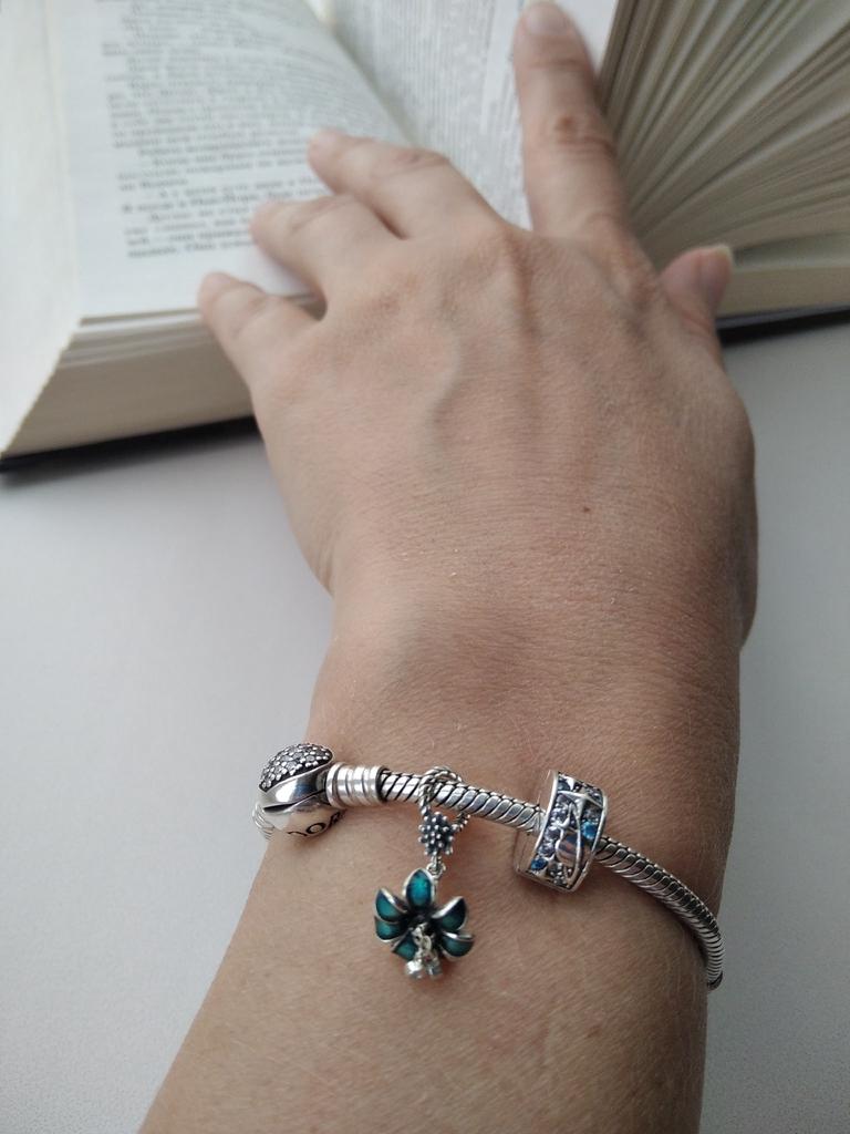 Доброго дня! Эту подвесочку получила в одной посылке с другим шармом. Посылка дошла за две с небольшим недели. В конвертик продавец положил плотный, мягкий, нарядный мешочек с зеленой лентой. Как я с первого взгляда влюбилась в эту подвеску, когда увидела на сайте, так и во второй раз меня накрыло, когда взяла ее в руки) Очень миниатюрный, невероятно изящный цветок лилии на тоненькой витой ножке и с подвижными тычинками в виде стразиков на двух цепочках. Ювелирная работа. Мастерство дизайнера и мастера впечатляют. Несмотря на всю хрупкость и миниатюрность этого сокровища, все соединения очень прочные, а на браслете подвеска не теряется, напротив, очень гармонично вписывается в общую композицию. Признаюсь, что теперь это мой любимый шарм. Кстати, эту подвеску можно носить на цепочке в виде кулончика. Только цепочка, как мне кажется, должна быть под стать ей — изящная и тоненькая. Отличных вам покупок!