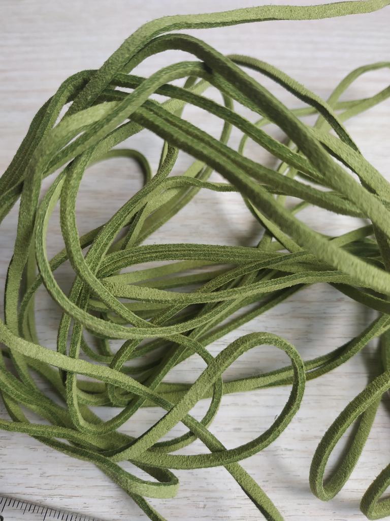 Декоративный замшевый шнур, 5 м. ✈️Доставка заказа - 25 дней. Цвет: оливковый. Толщина 2,5мм. 👩🔬Количество полученного отрезка - 5,4м. 👉Внешний вид и количество полностью соответствуют фото и описанию продавца. Товар качественный.