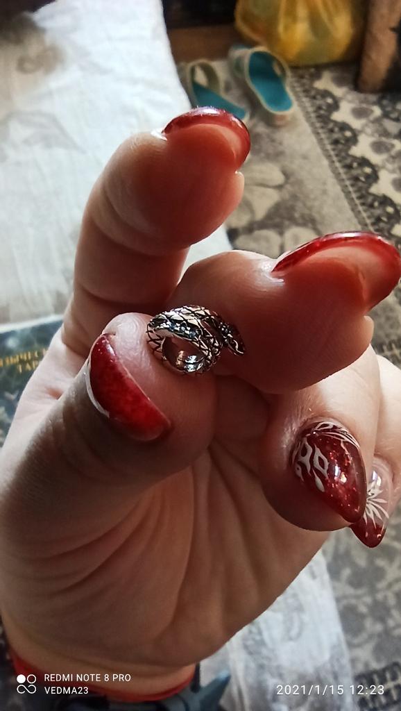 Очень хорошенький шарм.Заказала 5 июня,а уже 26 июня получила.Довольно быстро доставили.Хотя по фото, на сайте ,думала ,что он будет крупнее.Оказался меньше ,но не критично.Шарм -змейка выглядит красиво из стерлингового серебра 925 пробы.Буду носить его на браслете змейка с удовольствием.В подарок положили бархатный мешочек для хранения !Очень приятно.Спасибо Джум!!Продавца рекомендую.