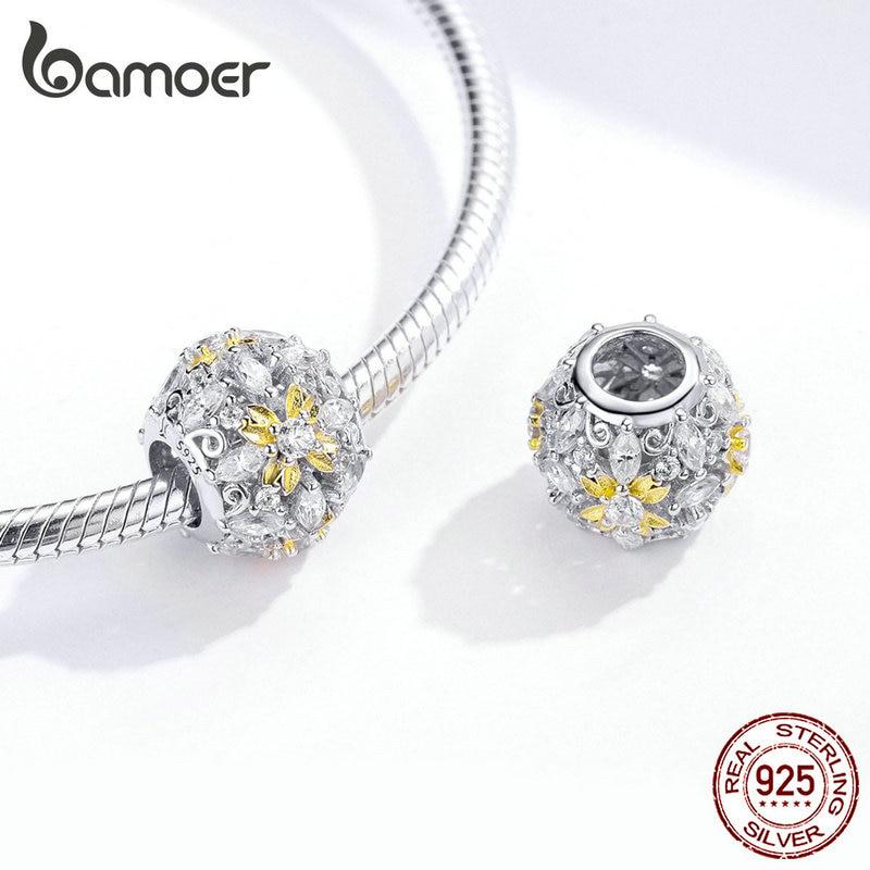 BAMOER эмалированные цветочные ажурные круглые бусины для женщин, очаровательные серебряные украшения 925, подходят для браслета со змеей 3 мм