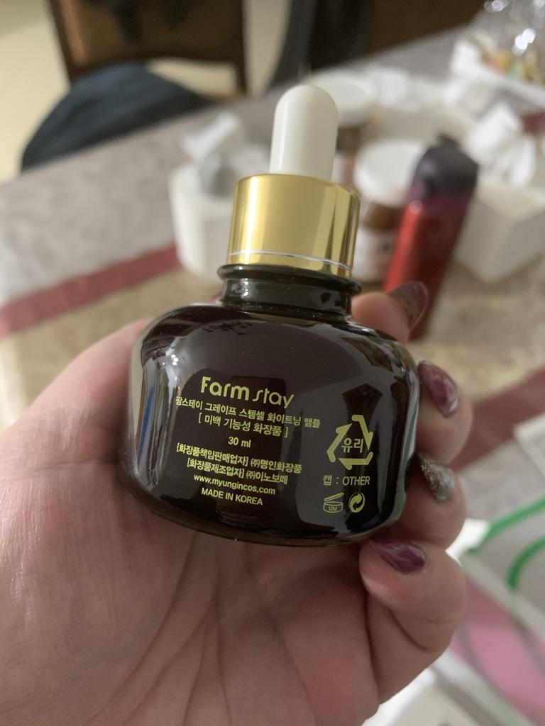 Получили с Эми 😸 сыворотку с фито-стволовыми клетками FarmStay Grape Stem Cell Whitening Ampoule Aнтивозрастное ,новейшее достижение косметологии от корейского бренда FarmStay . Уникальнaя сывороткa с фито-стволовыми клетками и натуральными экстрактами. Она создана специально для кожи, в которой уже начинают проявлять себя возрастные изменения - морщины, тусклость и вялость кожи, потеря упругости. Именно эти проблемы способны решить активные компоненты сыворотки. Они действуют изнутри и снаружи, и этот комплексный подход обеспечивает по-настоящему впечатляющий результат. Стволовые клетки свежего винограда обеспечивают высокую эластичность кожи за счет быстрой регенерации, улучшают ее состояние, нормализуют обменные процессы. Яблочный и грейпфрутовый экстракты восполняют нехватку витаминов, выводят токсины и оздоравливают клетки. Апельсиновый и томатный экстракты в альянсе с аденозином возвращают коже натуральную белизну и нежное сияние, улучшают энергообмен в тканях и препятствуют появлению возрастных пигментов. Масла ши и оливы обеспечивают мягкость кожного покрова, в то время как гиалуроновая кислота наполняет кожу питательной живительной влагой и тонизирует. Сыворотка поможет вашей коже стать заметно моложе, устранит некрасивую тусклость ,усталость и освежит цвет лица. Способ применения: Нанести сыворотку на кожу лица после использования тонера. Достаточно 2-3 капли. Я после умывания наношу и утром и вечером. Очень нравится. Бутылочка-стекло 30 мл. Расход очень экономный. Очень радует что название не наклеено, а выбито. Это говорит о качестве. Аромат приятный. Колпачок пипетка с резиновым кончиком. Консистенция однородная, беловатого цвета. Внутри имеется даже чек на заказ Стоимость 802 руб.