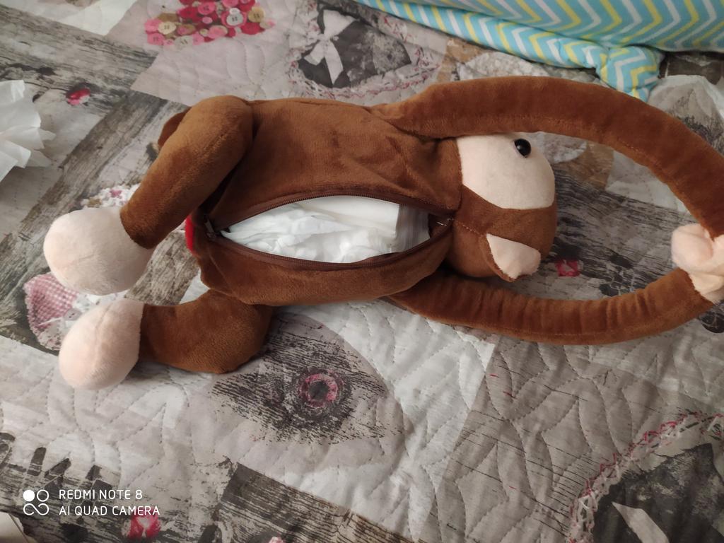 Долго доставка. Милая обезьяна. Мягкий материал. Красивый пошив. Но вот минус звезда я не поняла какие туда салфетки ложить.. свернула обычные, а они рвутся..