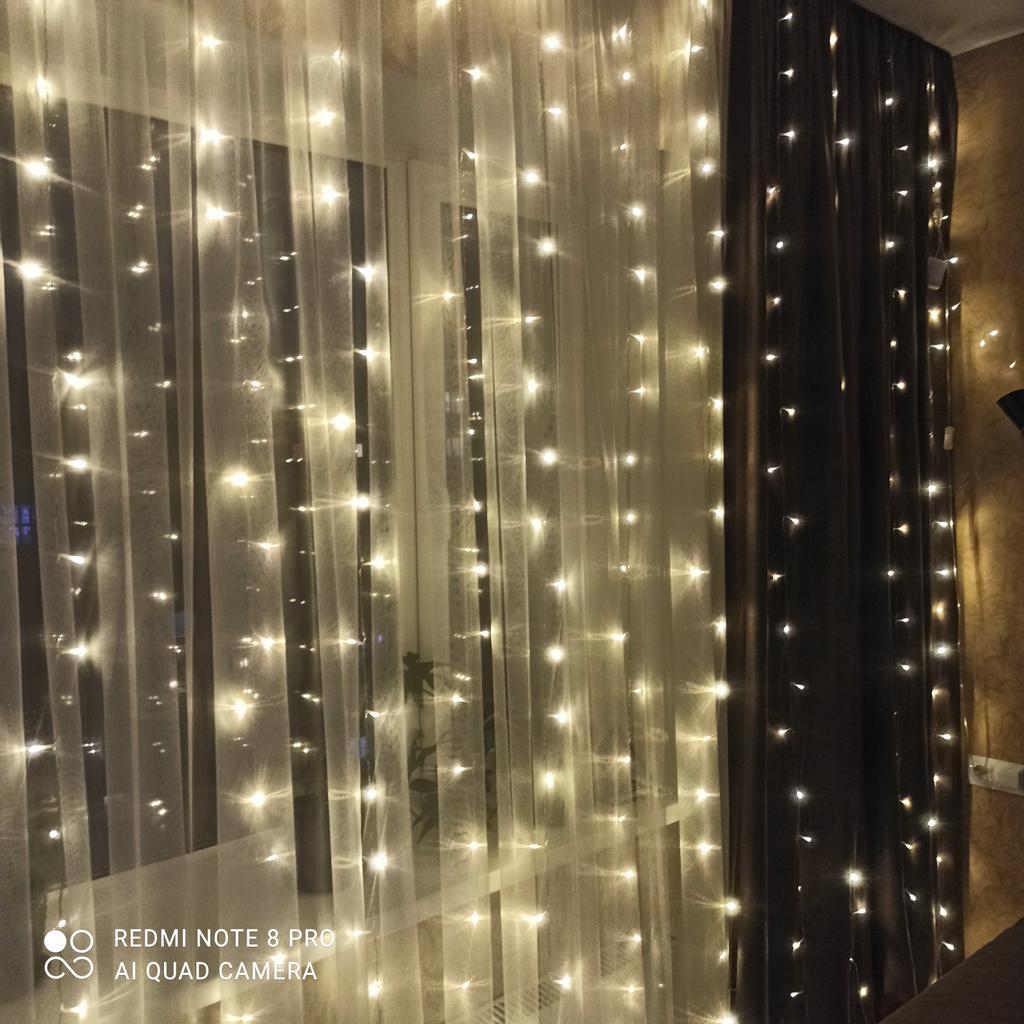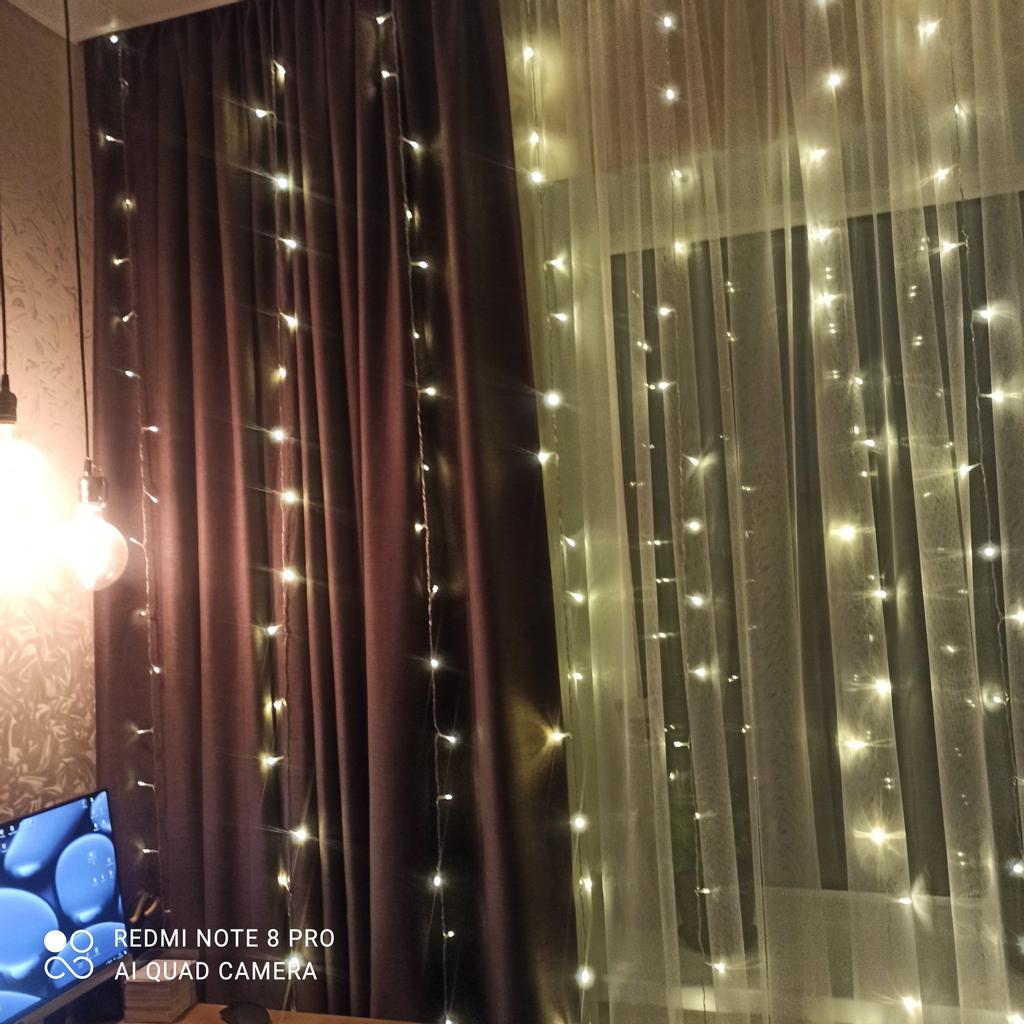 Гирлянда занавес Сказочная красота💕 гирлянда супер, смотрится очень красиво, оттенок нейтральный, несколько режимов. Выполнена гирлянда качественно, размер 3*3 метра Очень нравится, советую💕👍