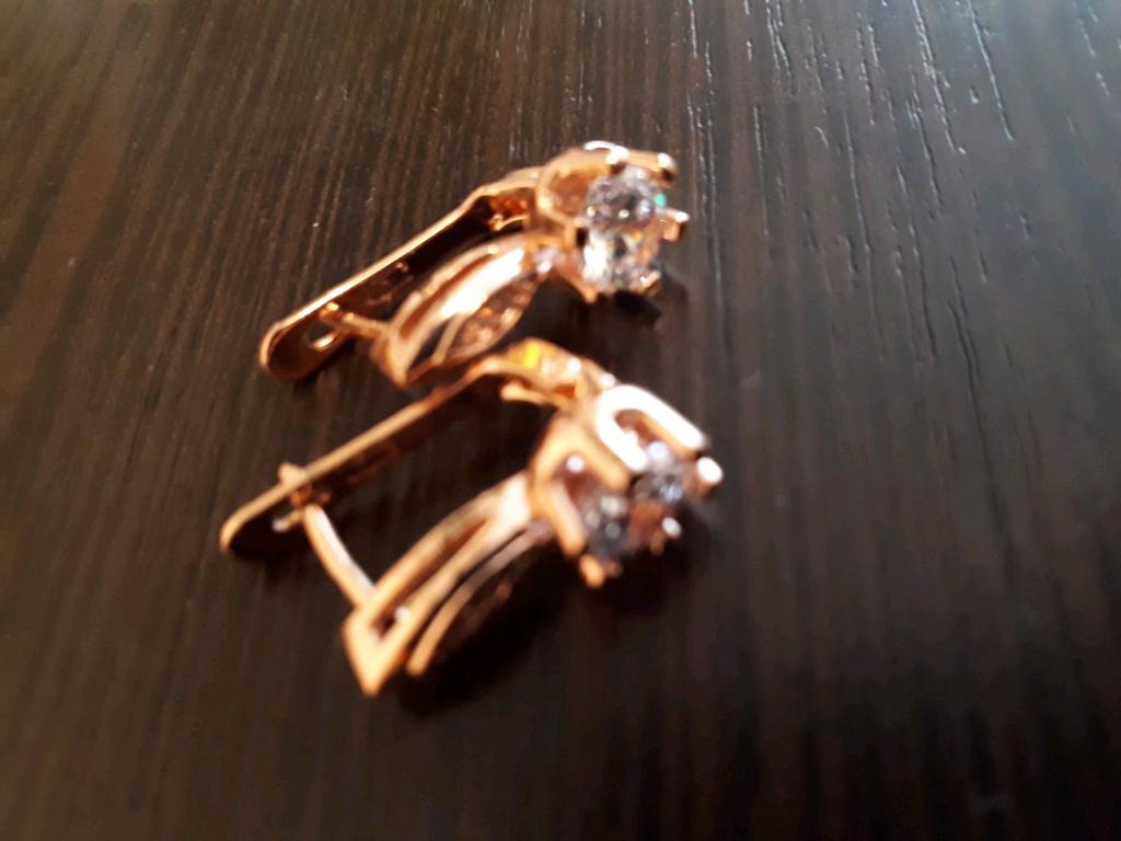 Ну очень красивые серьги! Похожи на золото, переливаются камушки и зелёного цвета, и белого. На работе подумали, что серьги с цитрином и бриллиантами. ))) Лишь бы не облезли