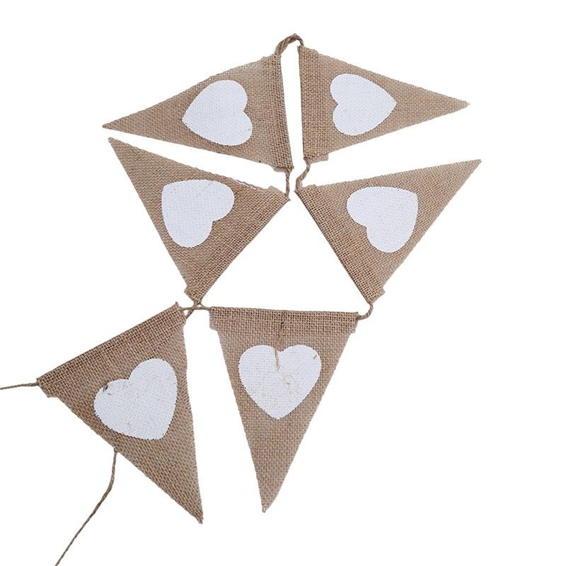 Джутовый канат лен треугольный день рождения вечеринка сердце флаг баннер свадьба домашний декор событие