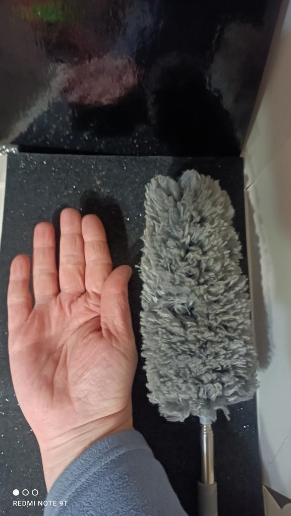Пришла моя помощница. Замечательная вещь, уже успела пройти все углы и люстры. Кисть сама 17 см, в расправленном виде 86 см. Собирает всю пыль, паутину, потом стряхнул или водой сполоснул и опять чистая. Ручка надёжная. Спасибо продавцу. Незаменимая вещь для уборки; люстры, гардины - всё сияет теперь. Да, размер немного отличается от заявленного, но в целом вещь хорошая, не надо доставать грамоздкий пылесос, чтоб смести всю паутину и пыль. И ручка силиконовая, очень приятно держать в руке.