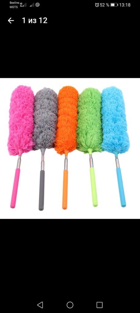 Щётку заказывала для сестры, своей пользуюсь уже несколько месяцев. Очень довольна. Щётка имеет телескопическую ручку и гнется, что даёт возможность вытирать пыль, даже на высоких шкафах. (Смотри видио) Спасибо продавцу и Джум.