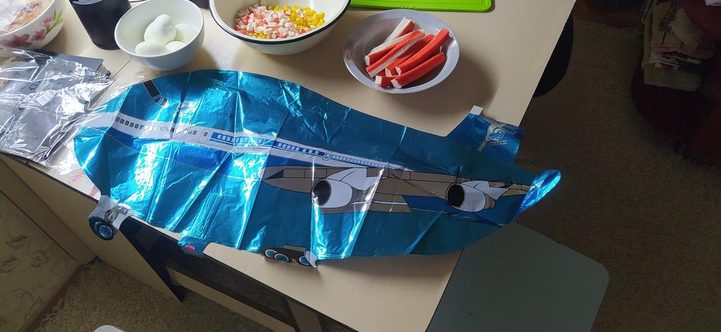 Воздушный шар из алюминиевой фольги в виде самолёта. Всем солнечный приветик! Заказали для маленького племянника большой воздушный шар в виде самолёта! Радости не было предела! Упакован в индивидуальный пакет и почтовый пакет, доставка заняла 3 недели. Материал - алюминиевая фольга. Рисунок чёткий, каких-либо подтеков не обнаружено. Размер 85х38 см. Надувается отлично. Мы надували воздухом через трубочку из под сока. Можно надуть гелием. В ассортименте у продавца 2 цвета на выбор: голубой и красный. Товар и продавца рекомендую всеми ручками👍🏼! Спасибо продавцу и любимому Джум! Всем приятных покупок! ПРОМОКОД НА 5%: SEEJR01VAI