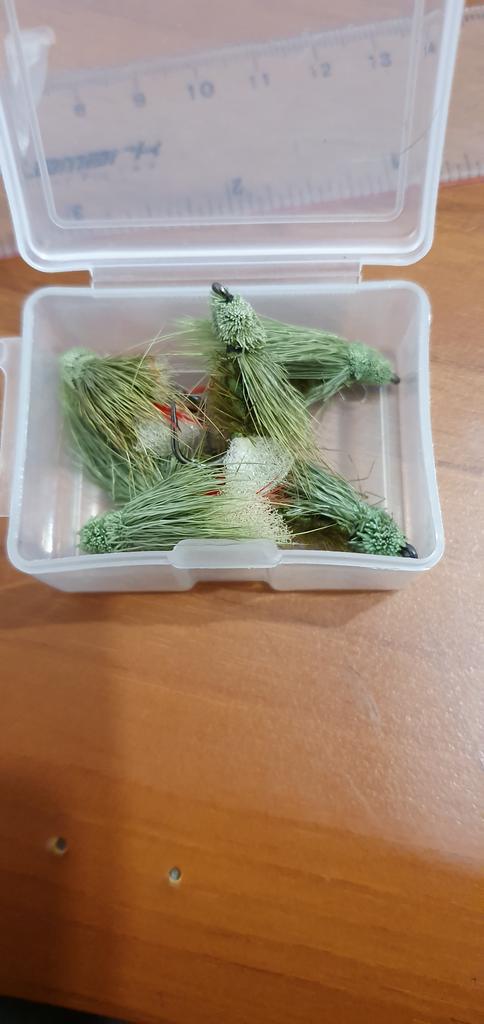 Мухи шли до Чукотки чуть больше месяца, упакованы в пластиковый контейнер. На вид отлично, правда великоваты, один крючок 2 см, а полностью муха все 3 тянет. Как опробую в деле, дополню отзыв.