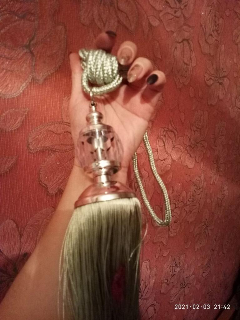 Кисти с бахрамой на зановески, цвет светло зеленый, была приятно удивленна величиной етих кистей 👀🌹, а также стеклянной фурнитури 💎, шар величиной куринного яйца, очень масивные и красивые 💰, выглядят дорого, брака нет, плетение шнуров и качество товара на высоте, цвета в асортименте, товар рекомендую 👍. Ловите промокод на скидку 5 процентов WGSU4A88ZB 😉🌹