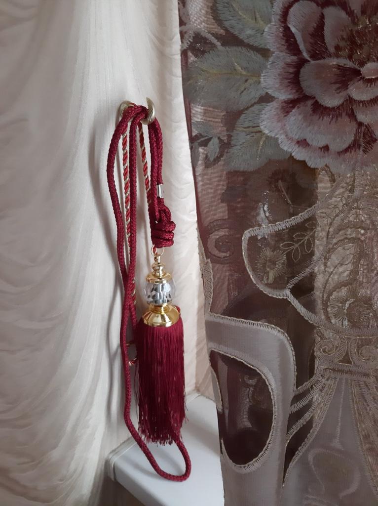 Ого ....какая прелесть легкие длинные,сами регулируете длинну...Плетёная ,хлопок, граненый шарик в меру крупный.На тяжёлых бархатных шторах смотрятся идиально.......Я В ВОСТОРГЕ,ООООЧЕНЬ КРАСИВО