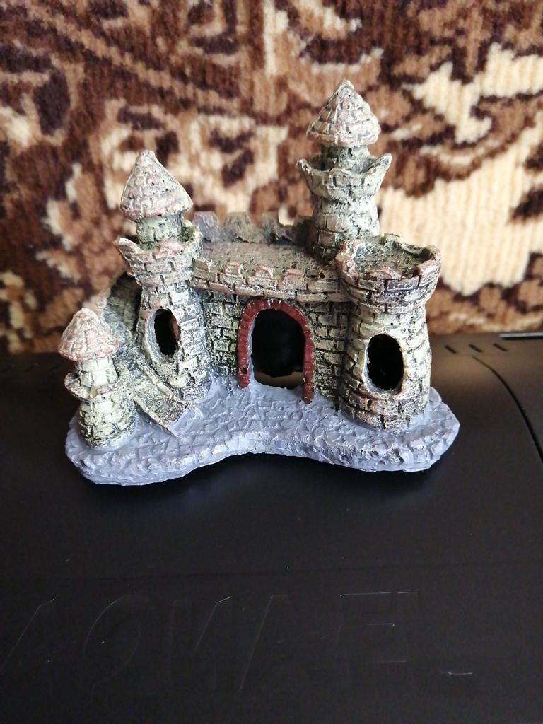 Очень симпатичный замок. Маленький правда. В воде появляется запах, отмачиваю, посмотрим что будет. Добавляю, запах ужасный, даже не рискну поставить в аквариум, галимая химия. Очень обидно. Не рекомендую.