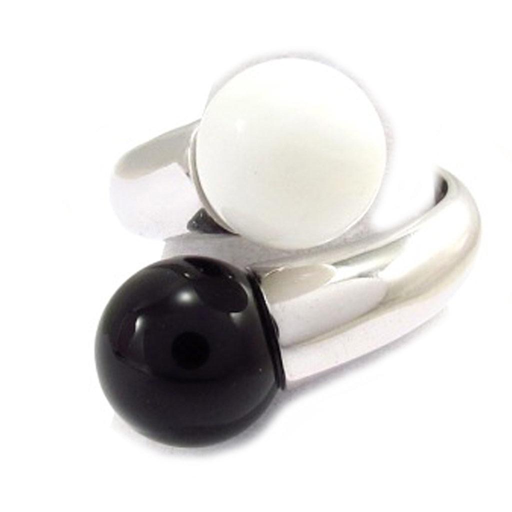 Черно-белое серебряное кольцо You & Me 'Binome'