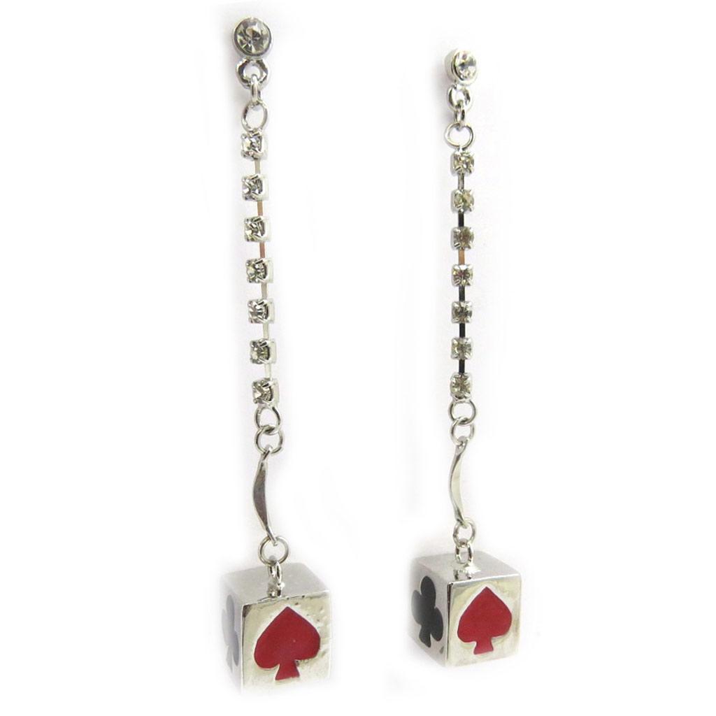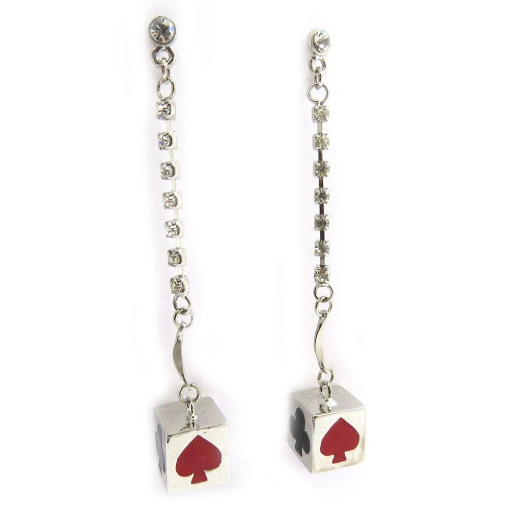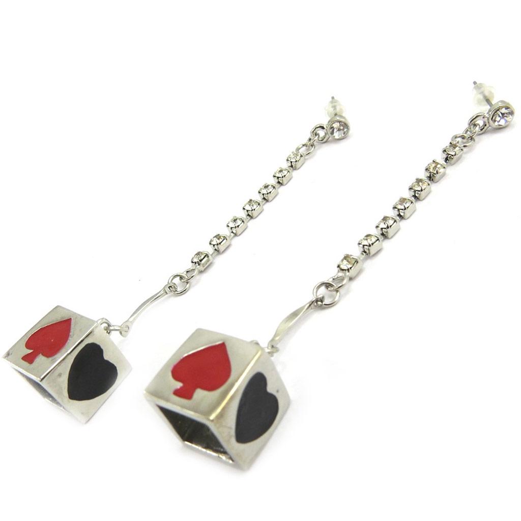 Les Trésors De Lily [E5118] - Серебристо-красные серьги «Кости удачи»