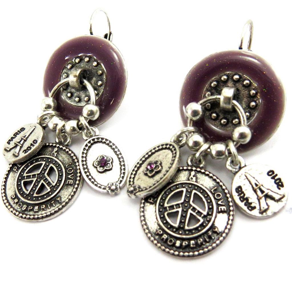 Les Trésors De Lily [G7779] - Пурпурные дизайнерские серьги Peace — купить товар онлайн с бесплатной доставкой по всему миру!