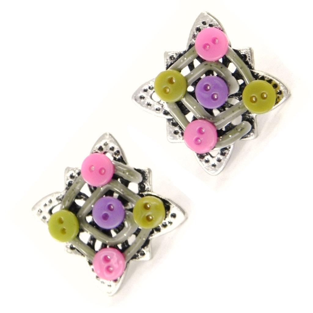 NOA [H8800] - Дизайнерские серьги "Бабушка" зелено-розовые.