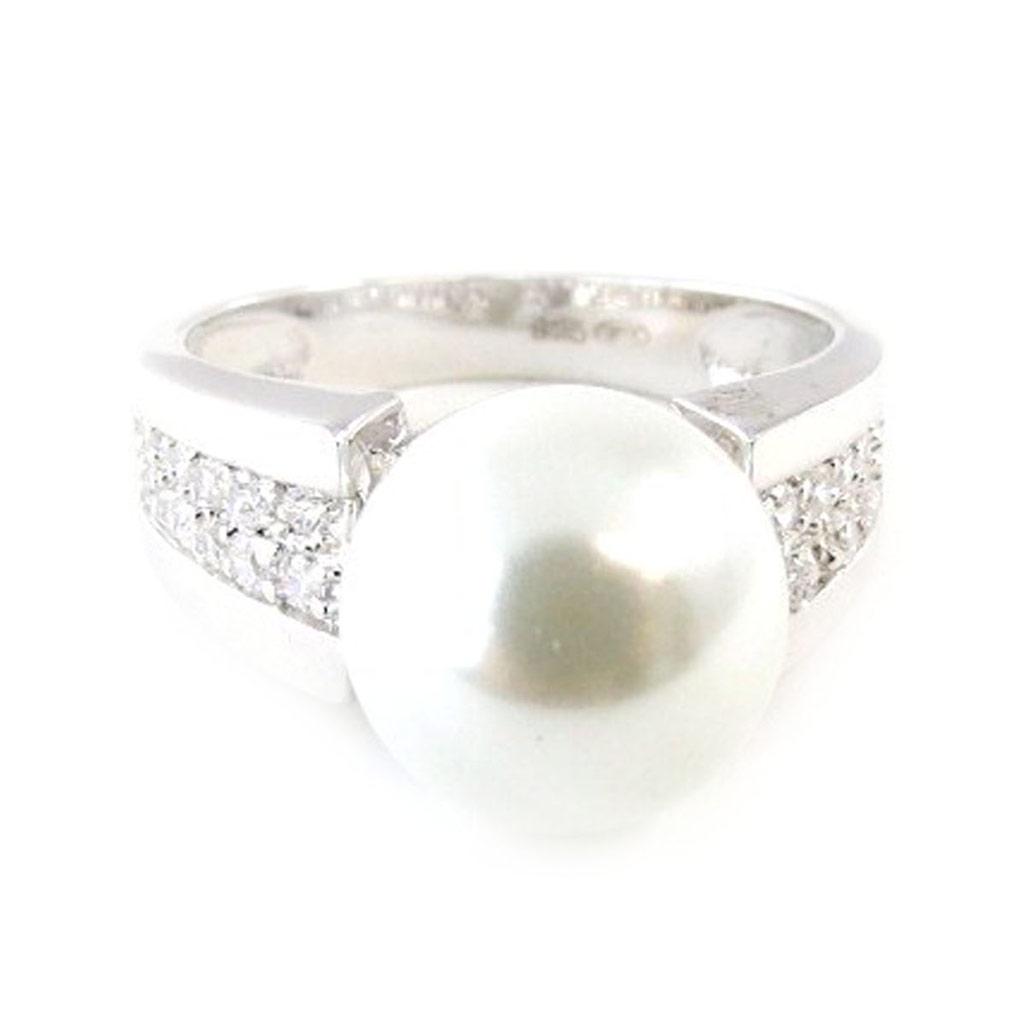 Серебряное кольцо 'Сисси' белое серебро (родий) - 10 мм