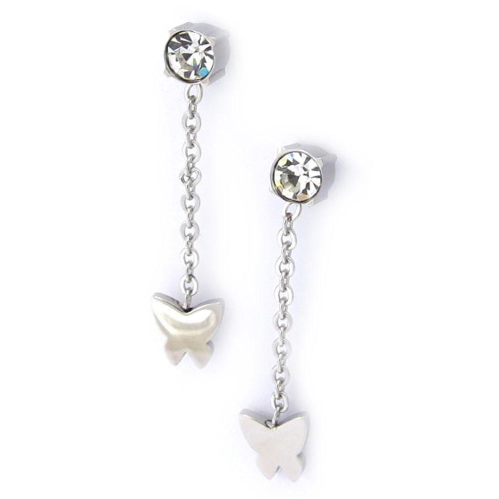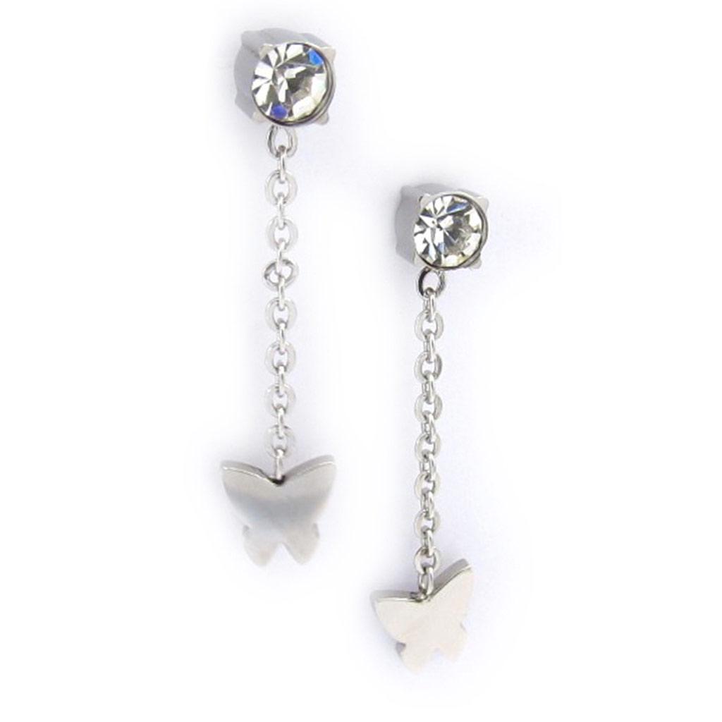 Les Trésors De Lily [K2437] - Серьги из стали 'Бабочки' серебристо-белые - бабочки 6 мм