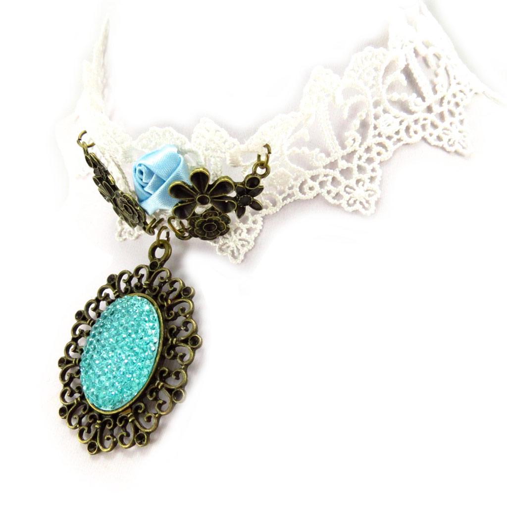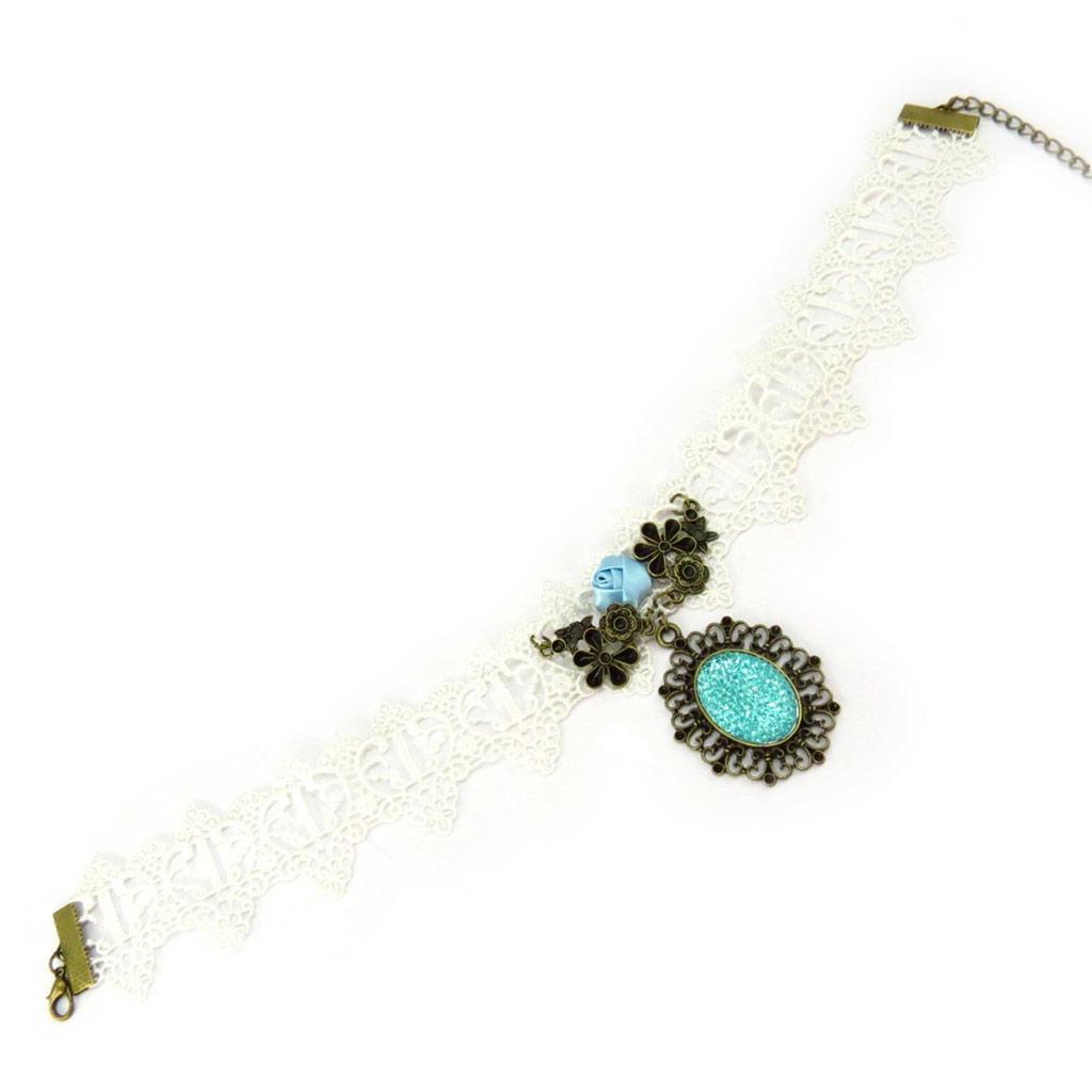 Les Trésors De Lily [K6581] - Дизайнерское колье "Courtisanes" цвета слоновой кости, бирюза (кружево)