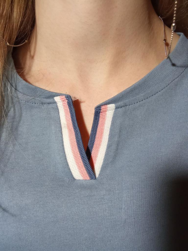 Пошив, вроде, аккуратный, но немного оказался кривоват ворот. Состав не прописан, но материал приятный к телу. Села хорошо, даже свободненько. Правда, по мне для таких футболок длина коротковата. Цвет голубовато серый. После стирки не села и цвет сохранился. Мои параметры 💃: 🎗 рост 160 см 🎗 длина плеч 40 см 🎗 объём груди 93 см 🎗 объём талии 74 см 🎗 объём бёдер 100 см Спасибо продавцу и Joom 🥰