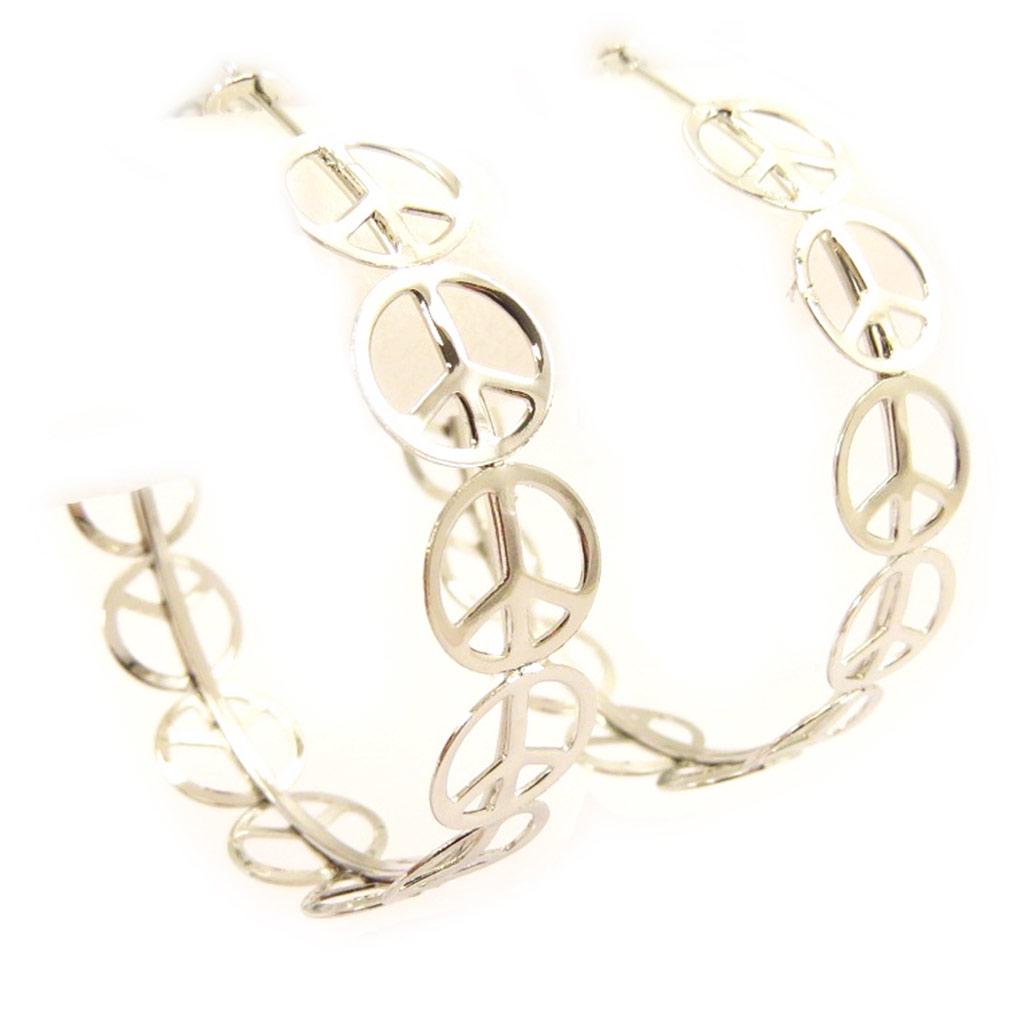 Les Trésors De Lily [L4451] - Серьги-кольца 'Peace' серебро Ø 50 мм — купить товар онлайн с бесплатной доставкой по всему миру!