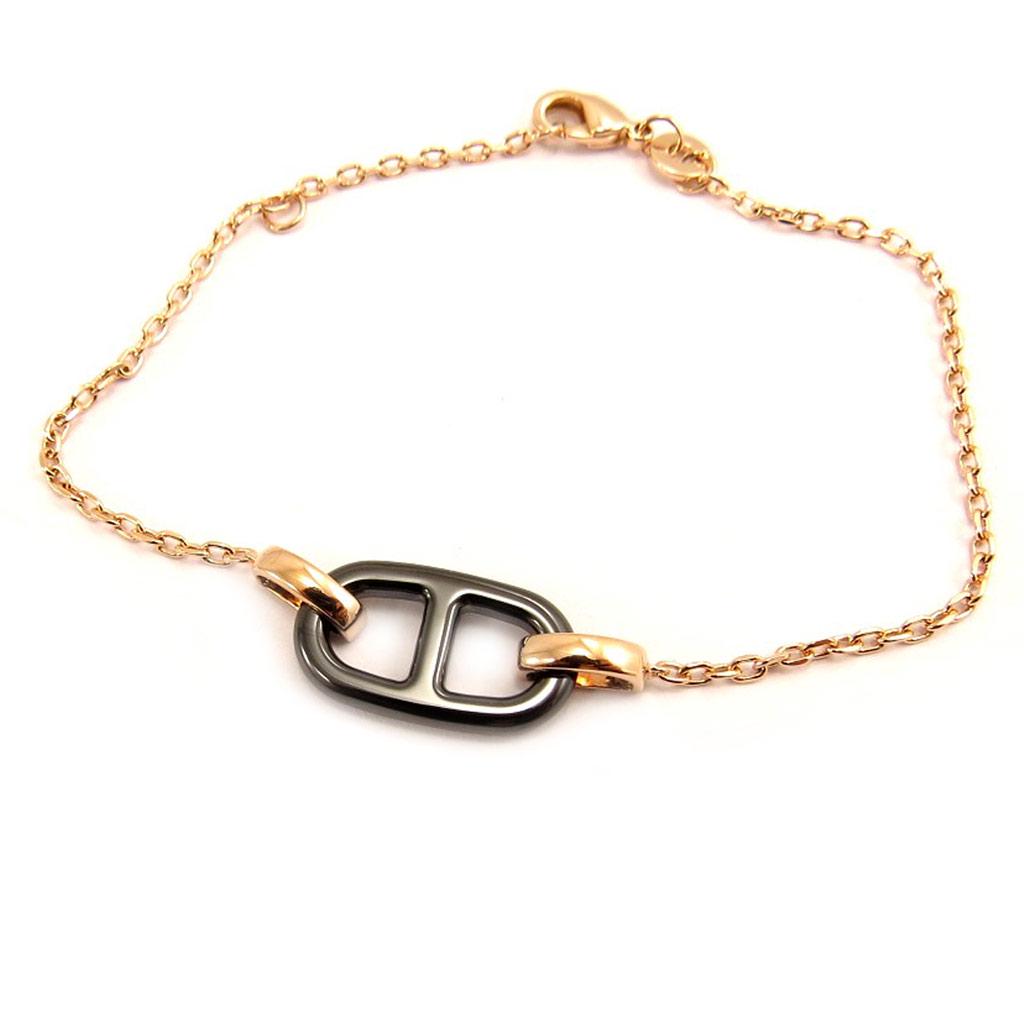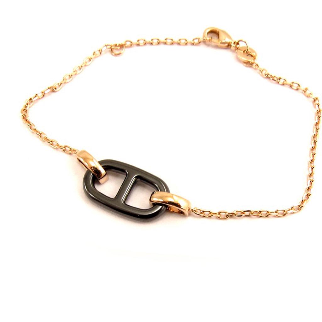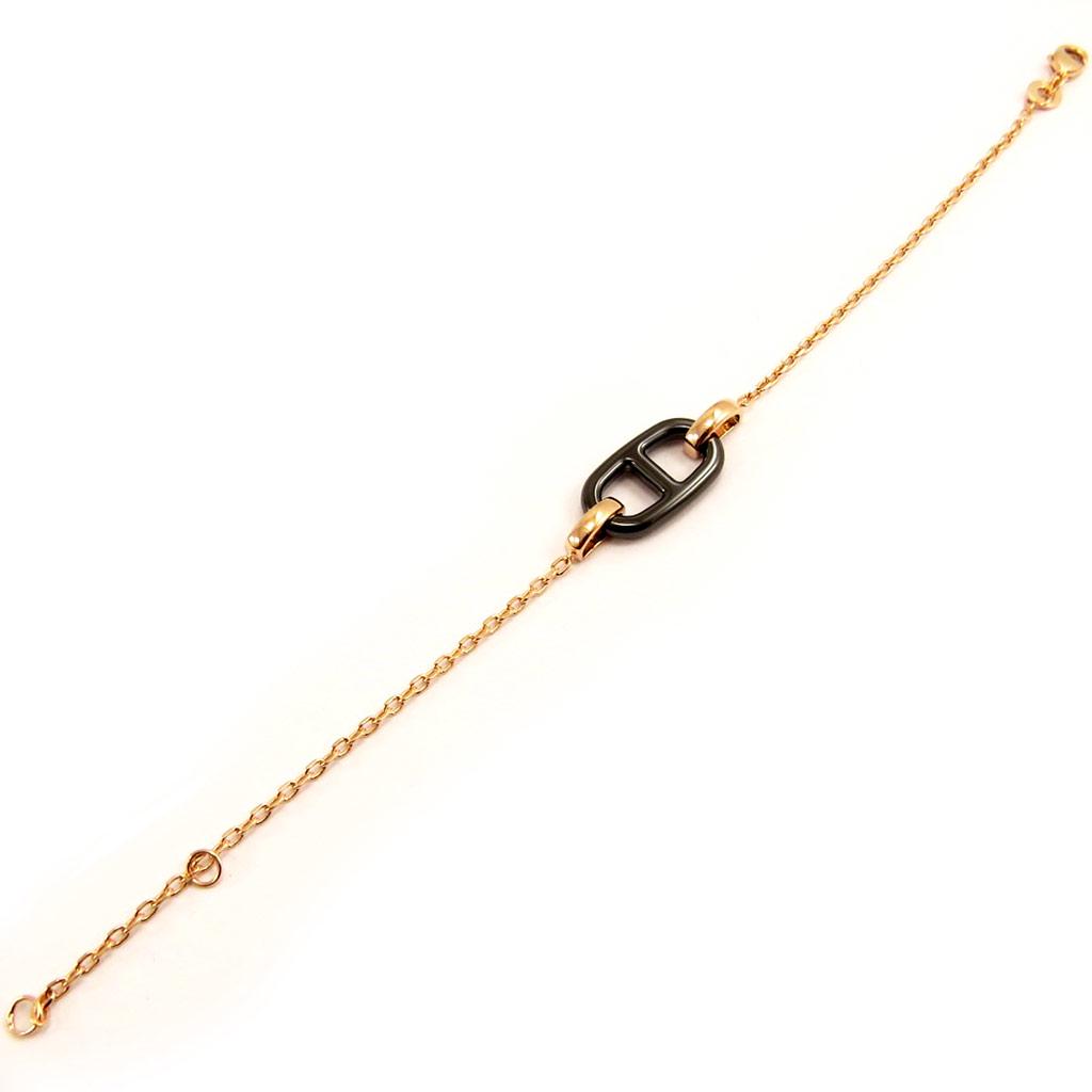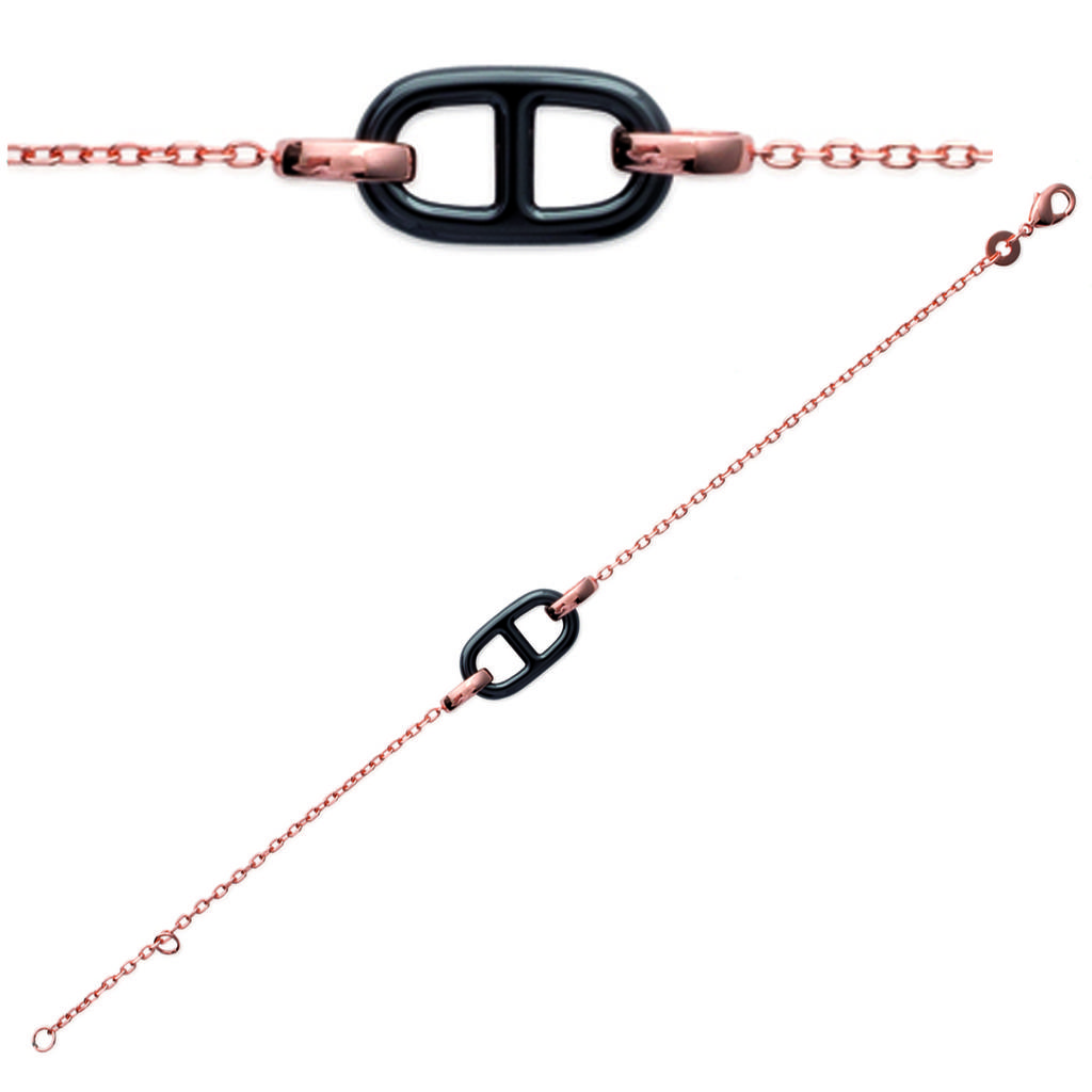 Les Trésors De Lily [L4633] - Позолоченный браслет 'Maille Marine' розовый, черная керамика (розовое золото) - 19x10 мм