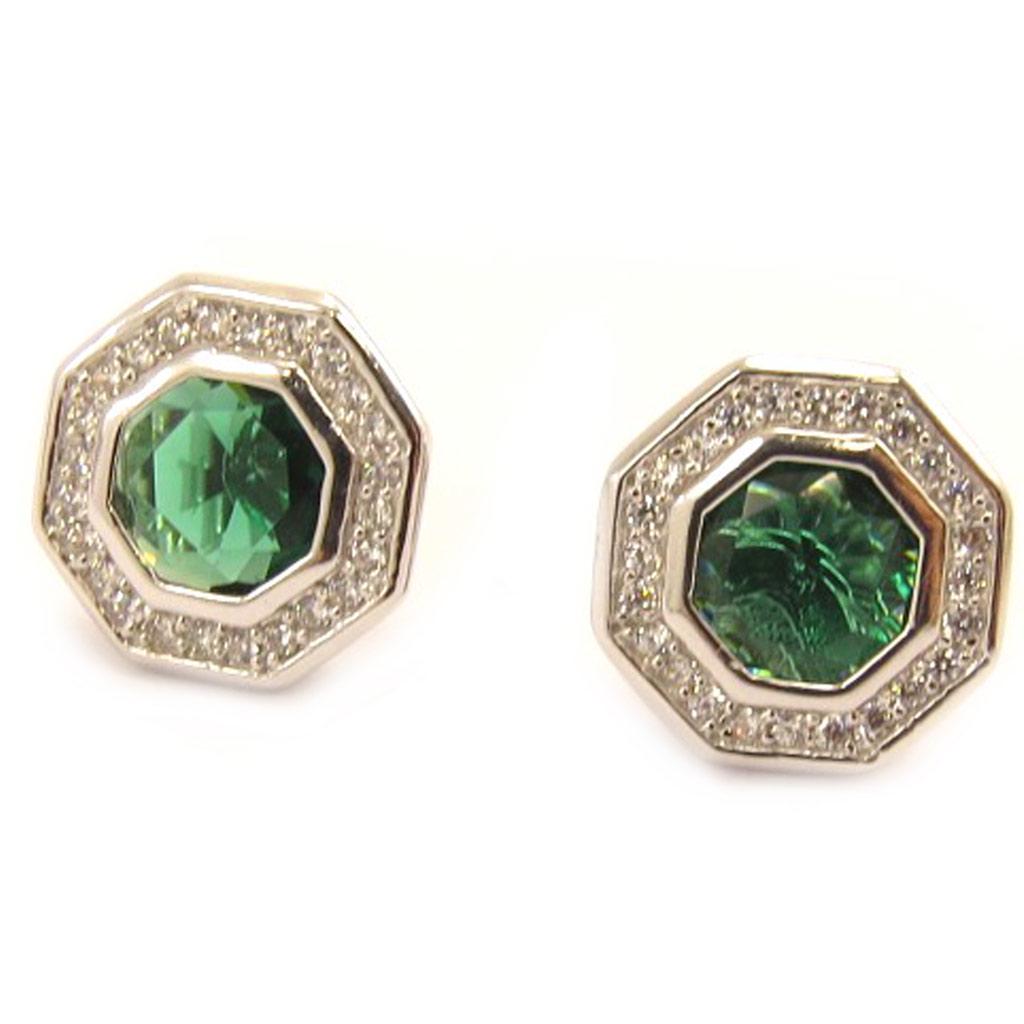 Les Trésors De Lily [L4656] - Серебряные серьги "Сисси" зелено-белые (родиевое покрытие) - 13х13 мм
