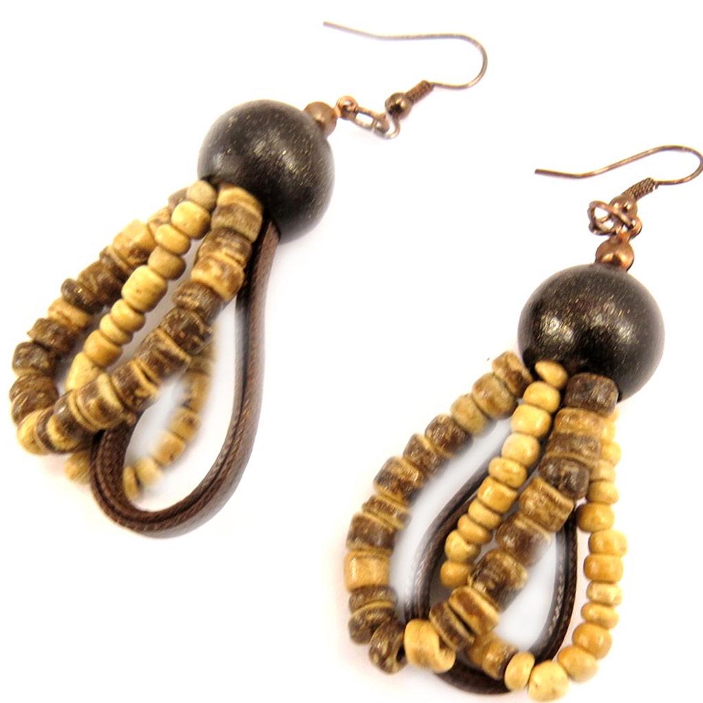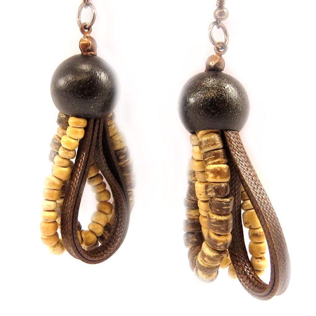 Les Trésors De Lily [L5219] - Дизайнерские серьги "Килиманджаро" коричневое дерево бежевый