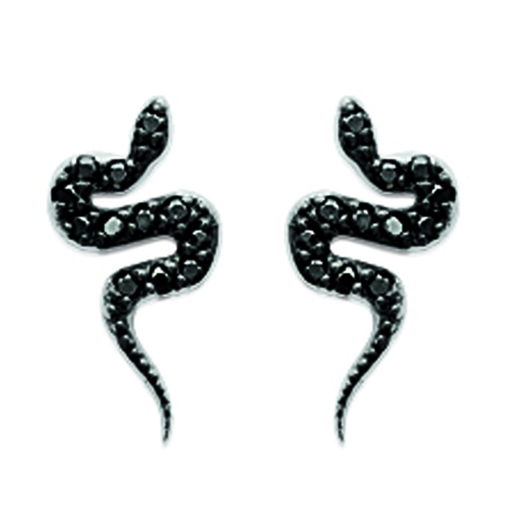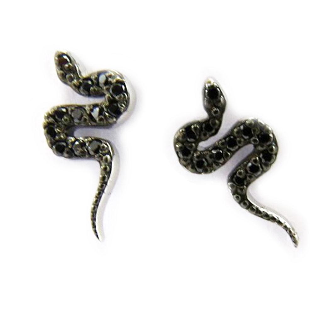Les Trésors De Lily [L5671] - Серьги «Змеи» черные серебряные (родиевое покрытие) - 13х6 мм