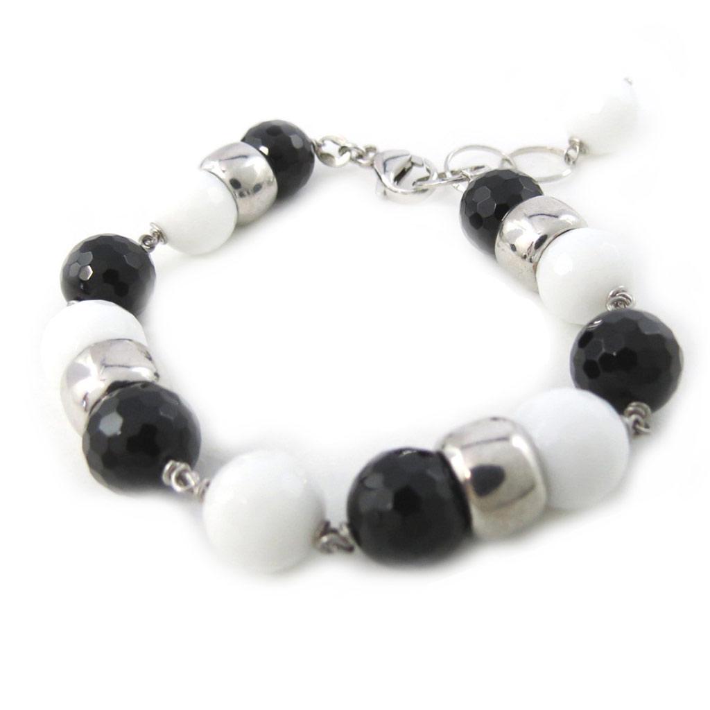 Altesse [M4122] - Серебряный браслет «Минералия» черный и белый агат — купить товар онлайн с бесплатной доставкой по всему миру!